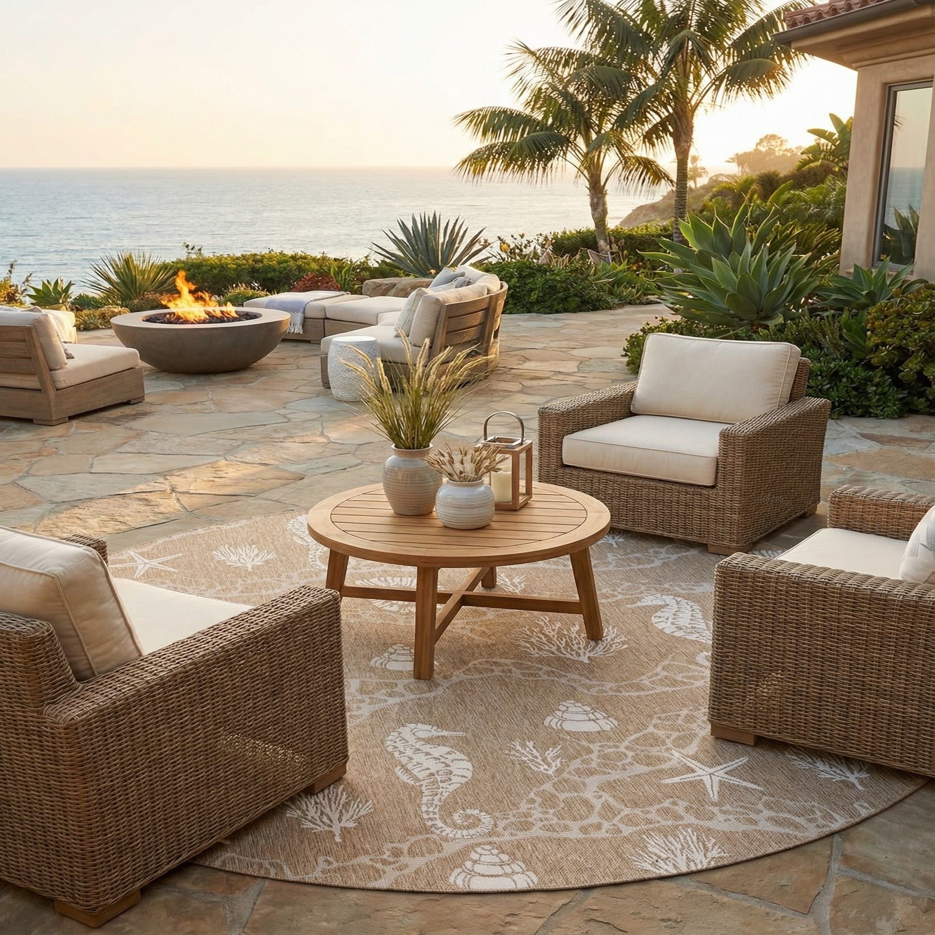 Primary image 13' x 13'  Washable Coastal Indoor / Outdoor Round Rug