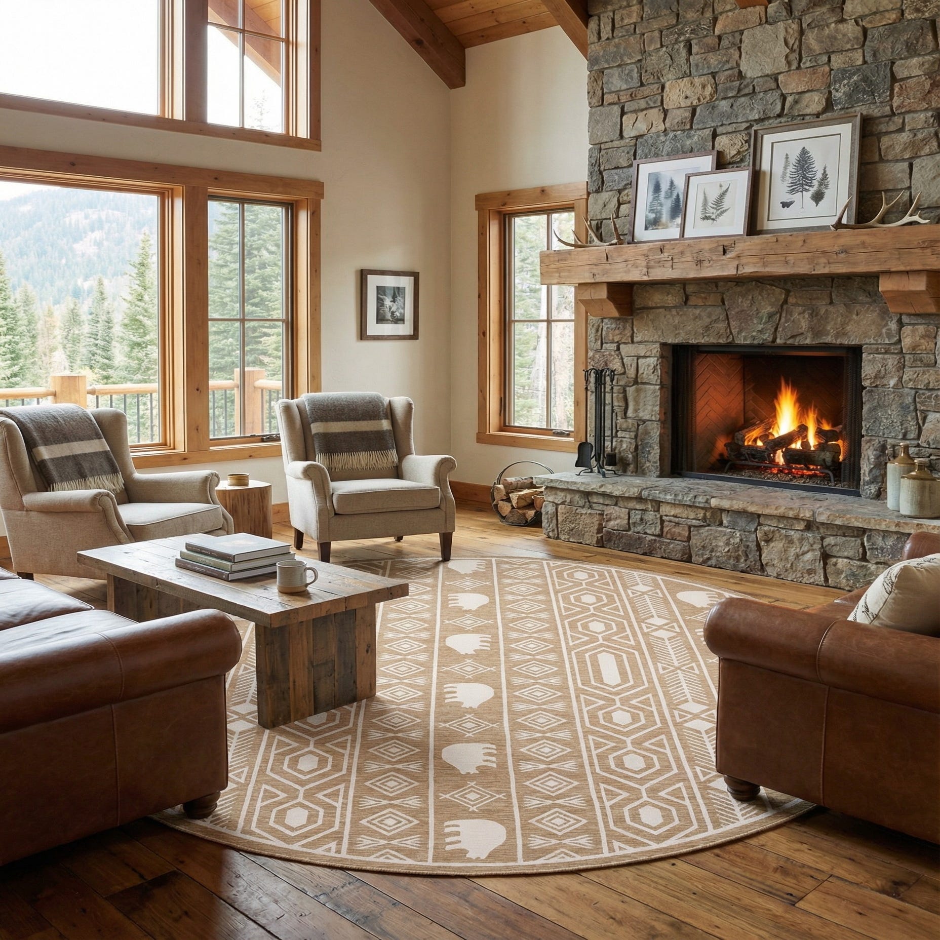 13' x 13' Washable Southwestern Indoor / Outdoor Round Rug