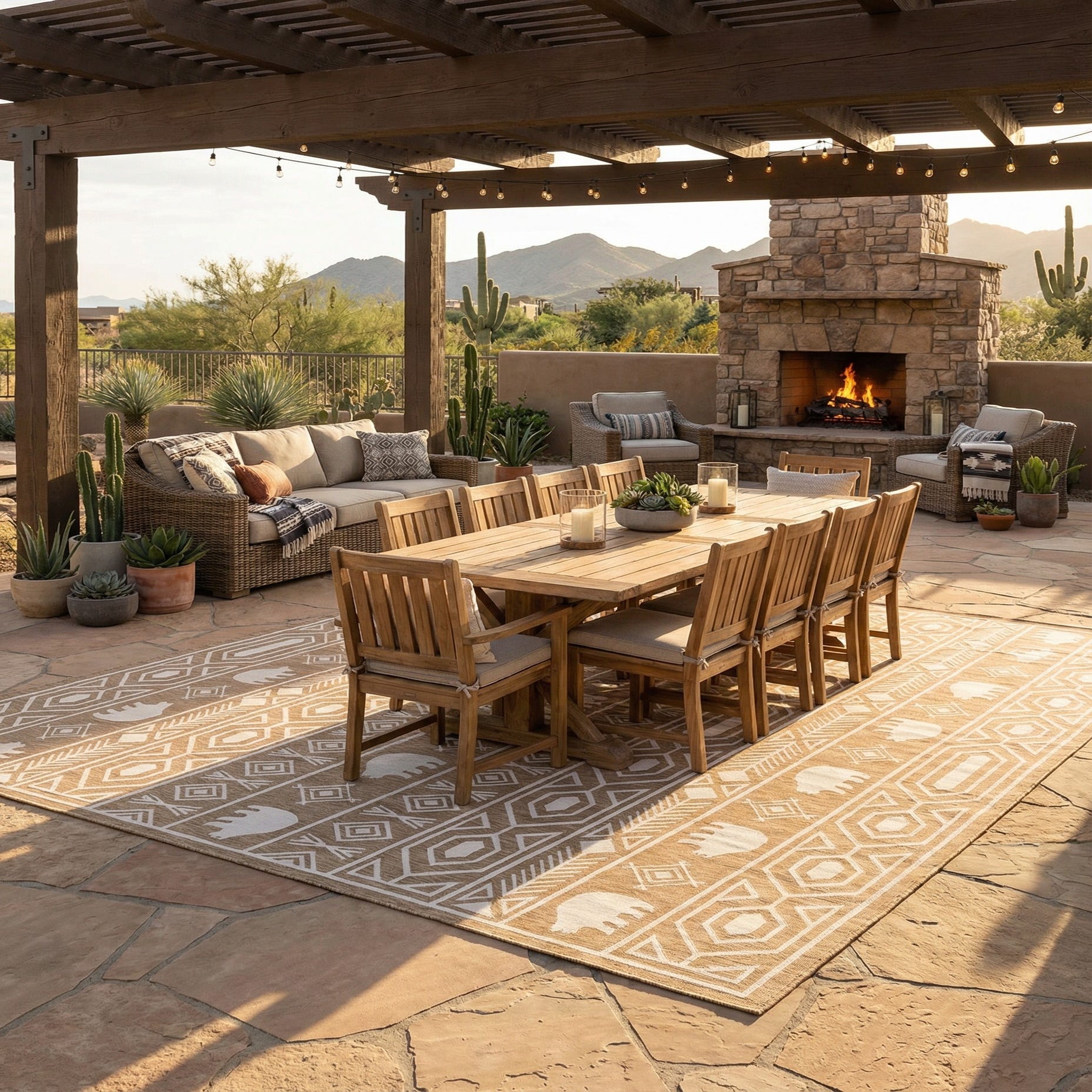 13' x 13' Washable Southwestern Indoor / Outdoor Square Rug