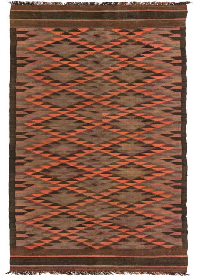 Primary color is Taupe. Colors in this rug include: Taupe, Brown, Orange, Light Brown, Tan.