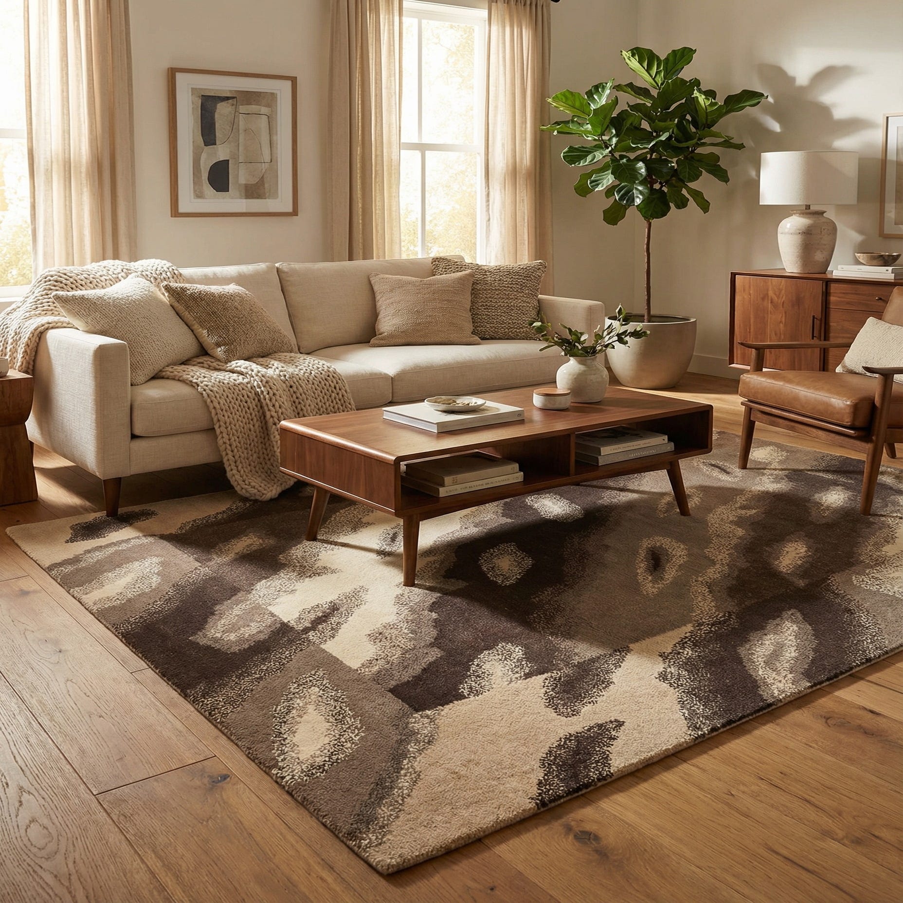 Primary color is Taupe. Colors in this rug include: Taupe, Brown, Ivory, Light Brown, Tan.