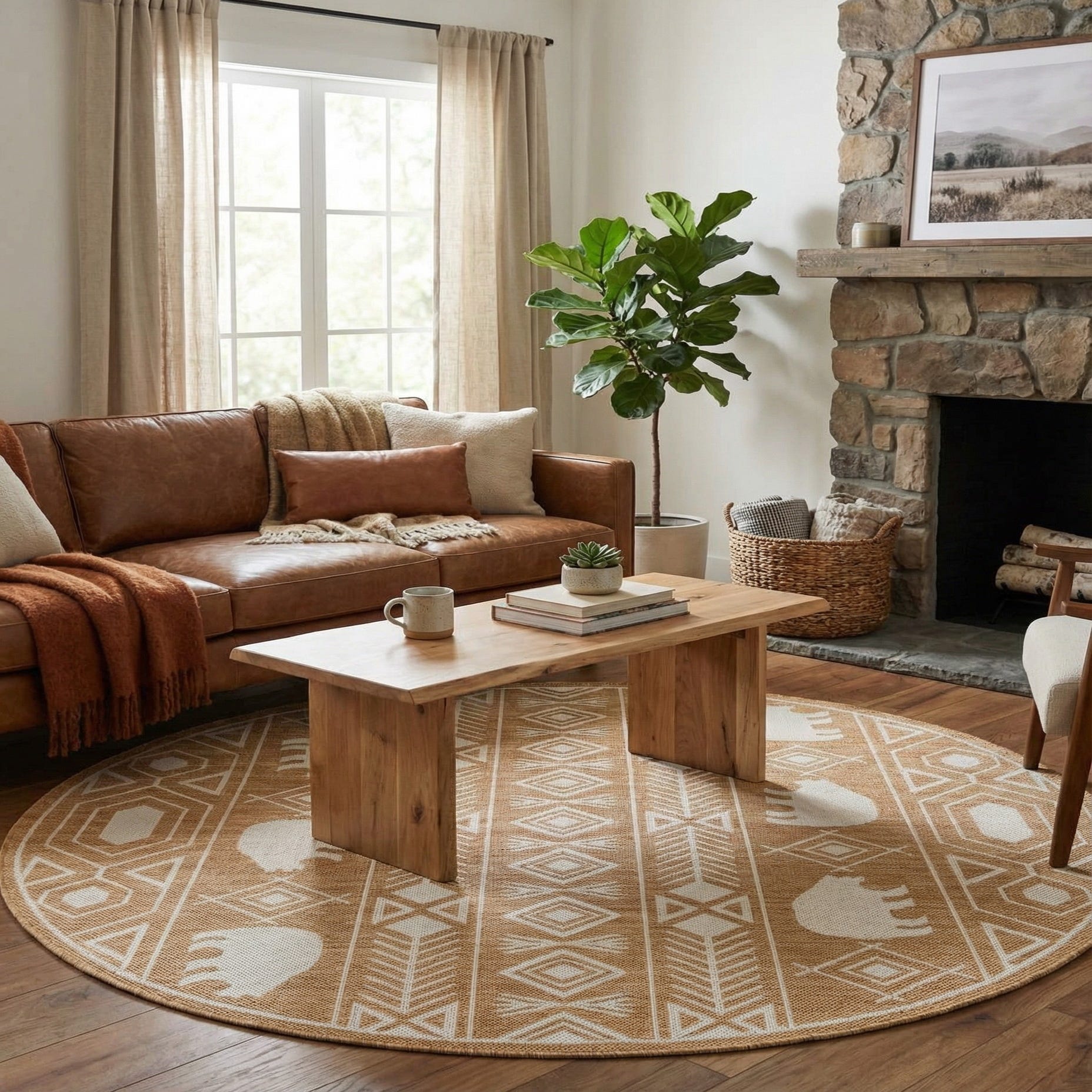 5' 3 x 5' 3 Washable Southwestern Indoor / Outdoor Round Rug