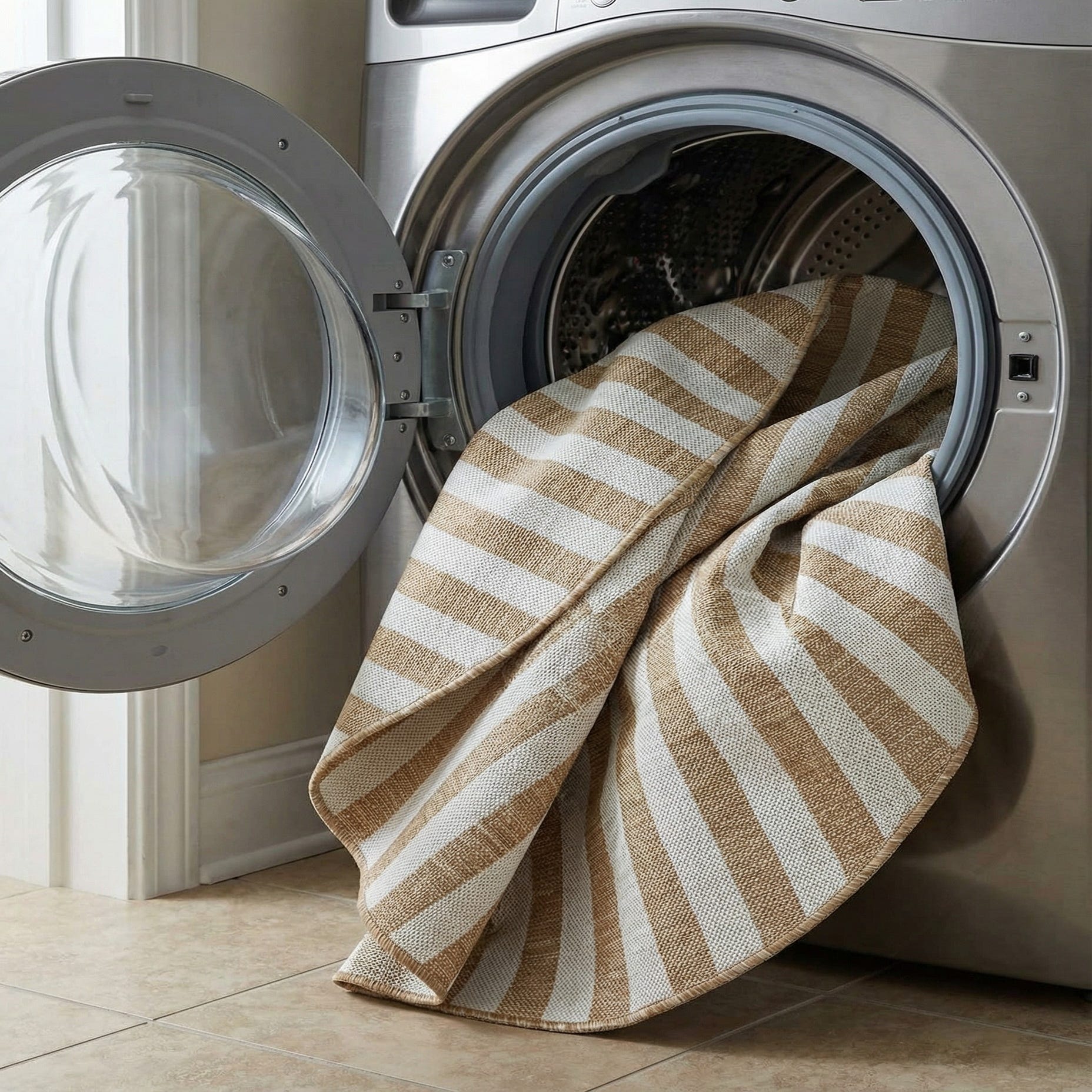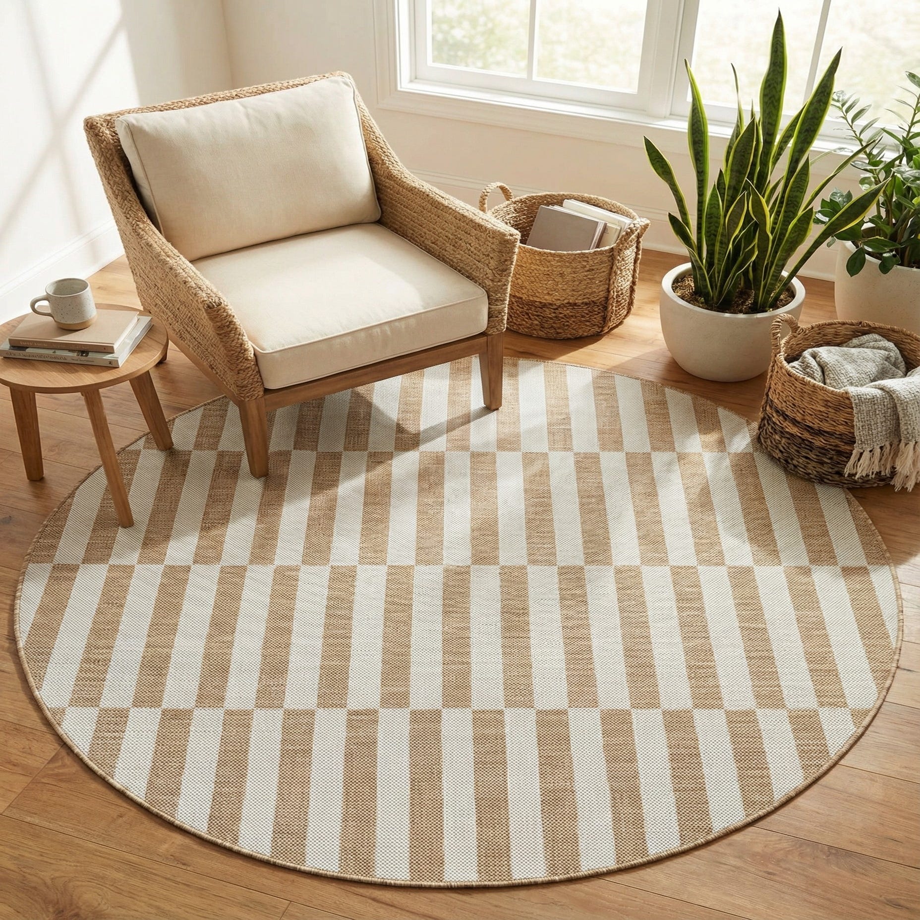 5' 3 x 5' 3 Washable Striped Indoor / Outdoor Round Rug