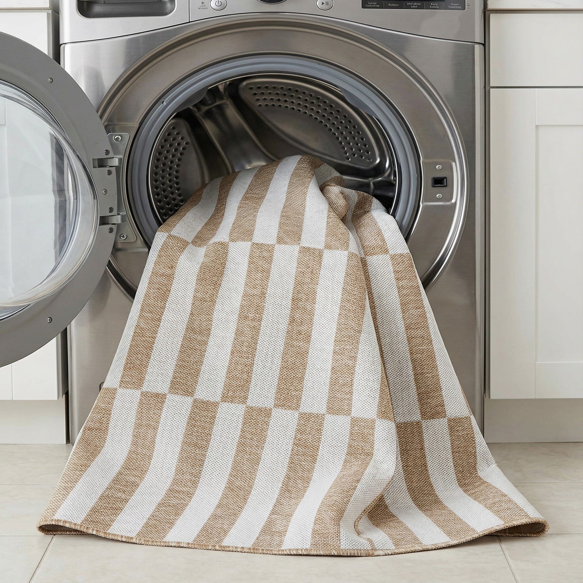 5' 3 x 7' Washable Striped Indoor / Outdoor Rug