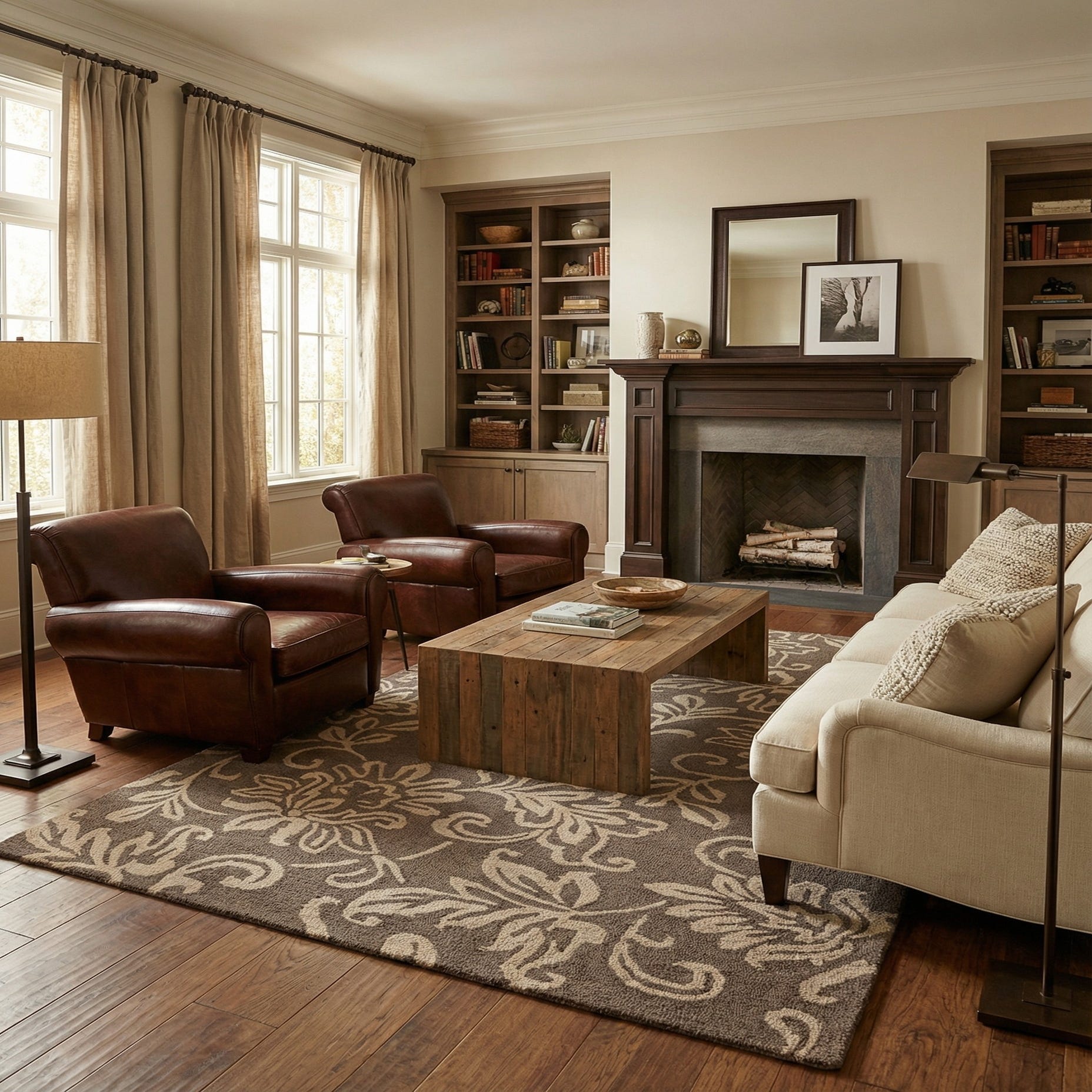 Primary color is Taupe. Colors in this rug include: Taupe, Ivory.