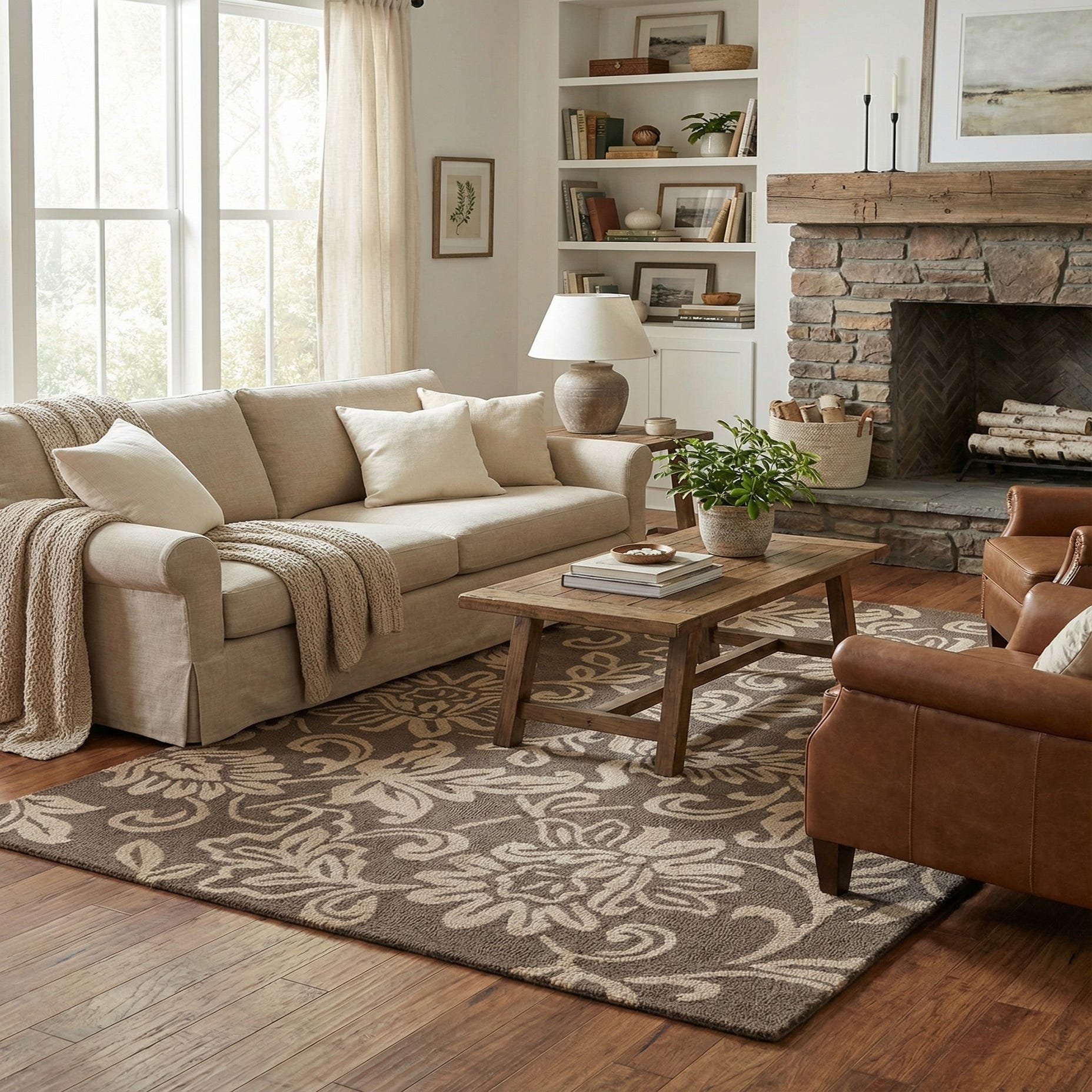 Primary color is Taupe. Colors in this rug include: Taupe, Ivory.