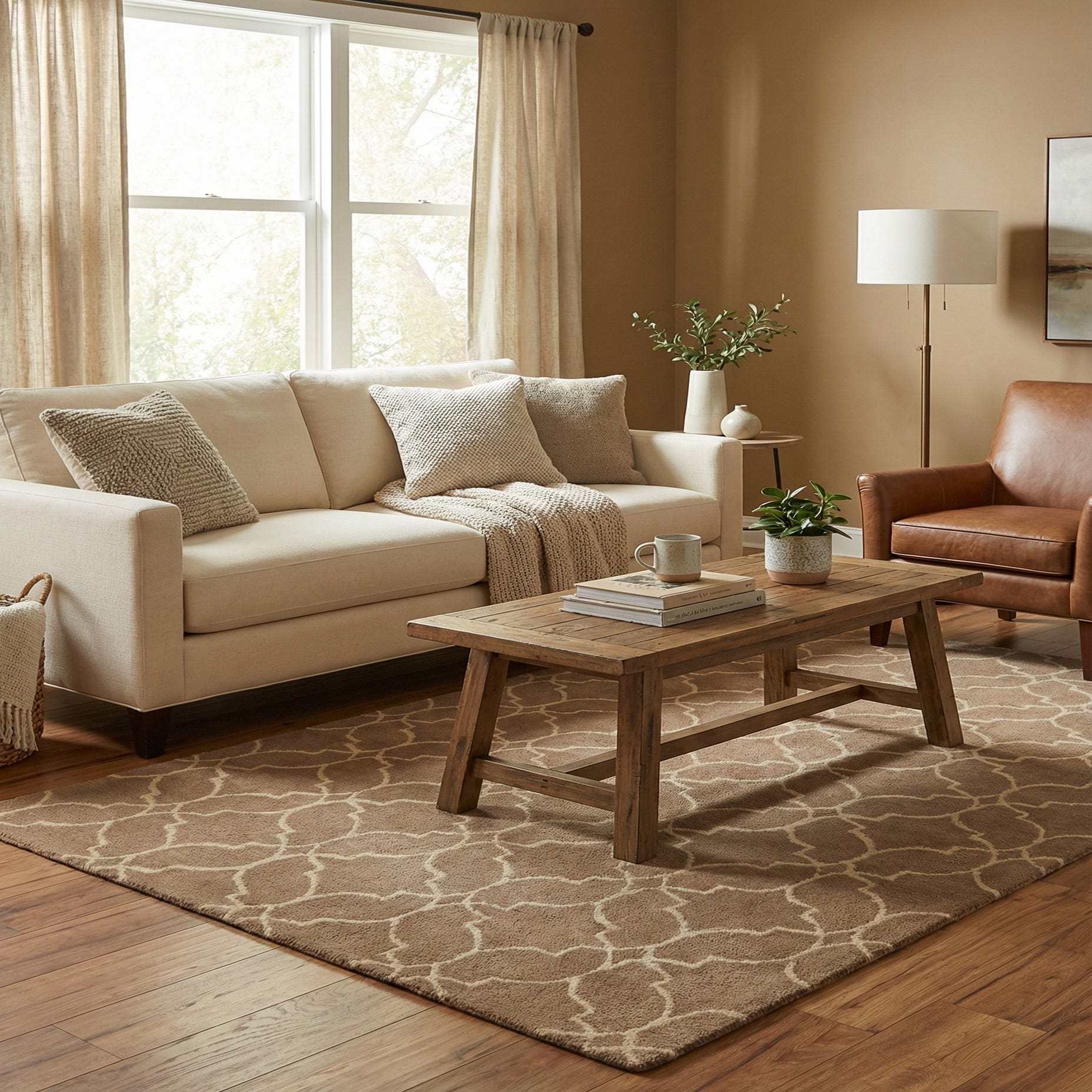 Primary color is Taupe. Colors in this rug include: Taupe, Ivory.