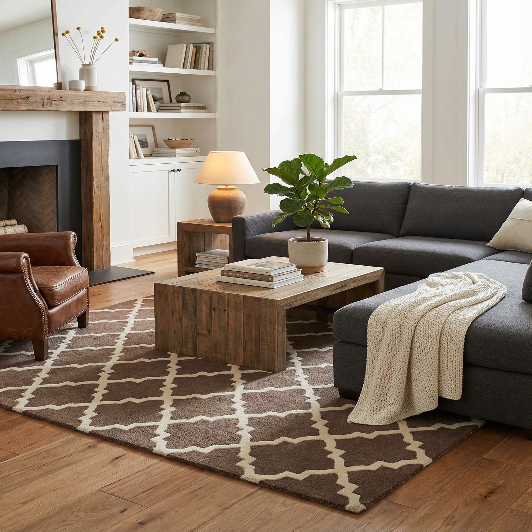 Primary color is Taupe. Colors in this rug include: Taupe, Ivory.