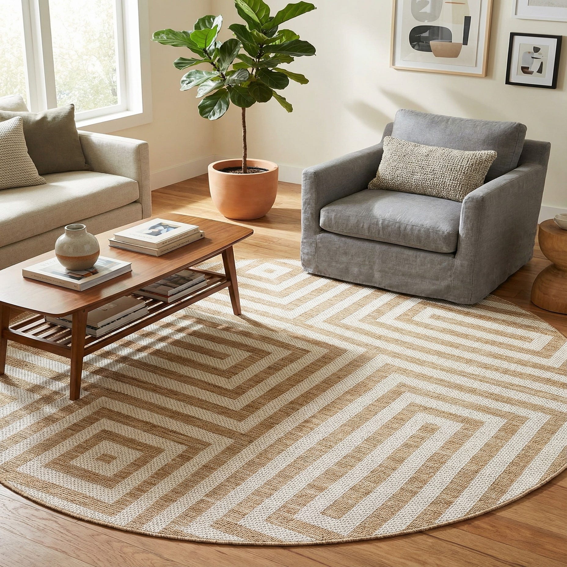6' x 6' Washable Modern Indoor / Outdoor Round Rug