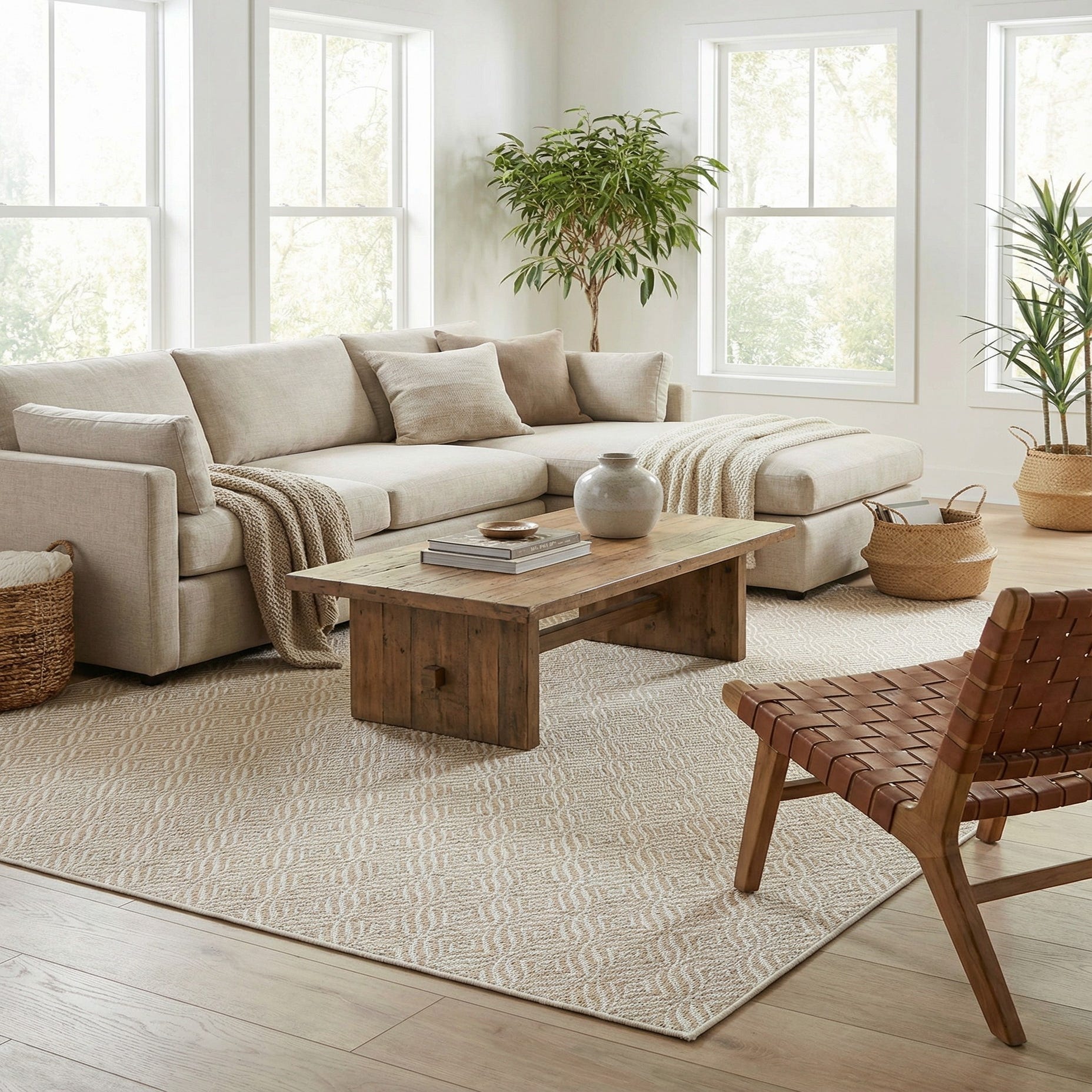Primary color is Taupe. Colors in this rug include: Taupe, Ivory.