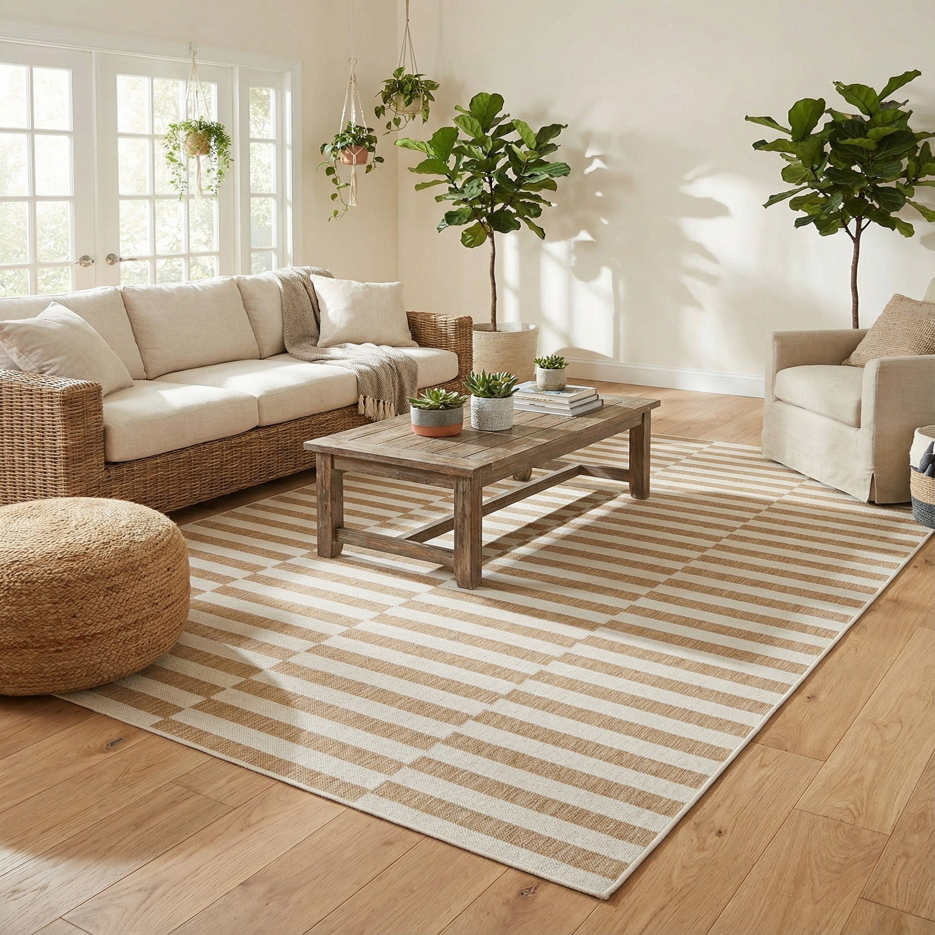 7' x 10' Washable Striped Indoor / Outdoor Rug