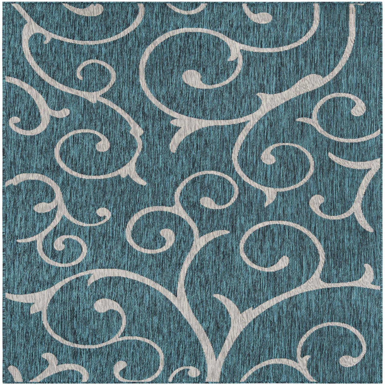 Custom Teal Washable Botanical Indoor / Outdoor Rug