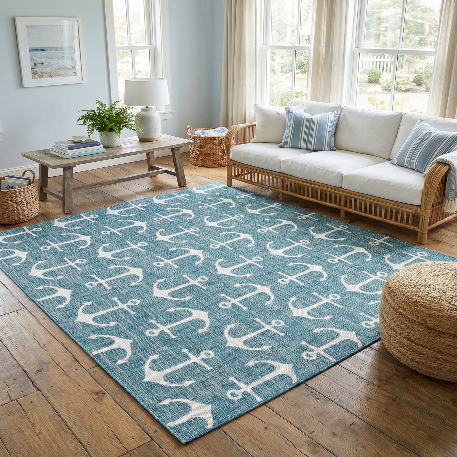10' x 10' Washable Coastal Indoor / Outdoor Square Rug