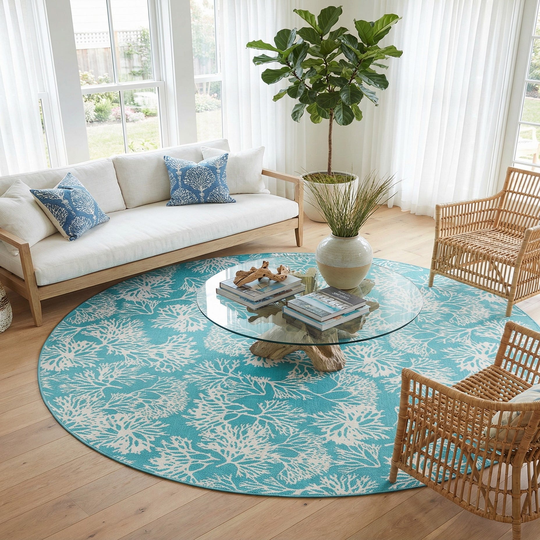 10' x 10' Washable Coastal Indoor / Outdoor Square Rug