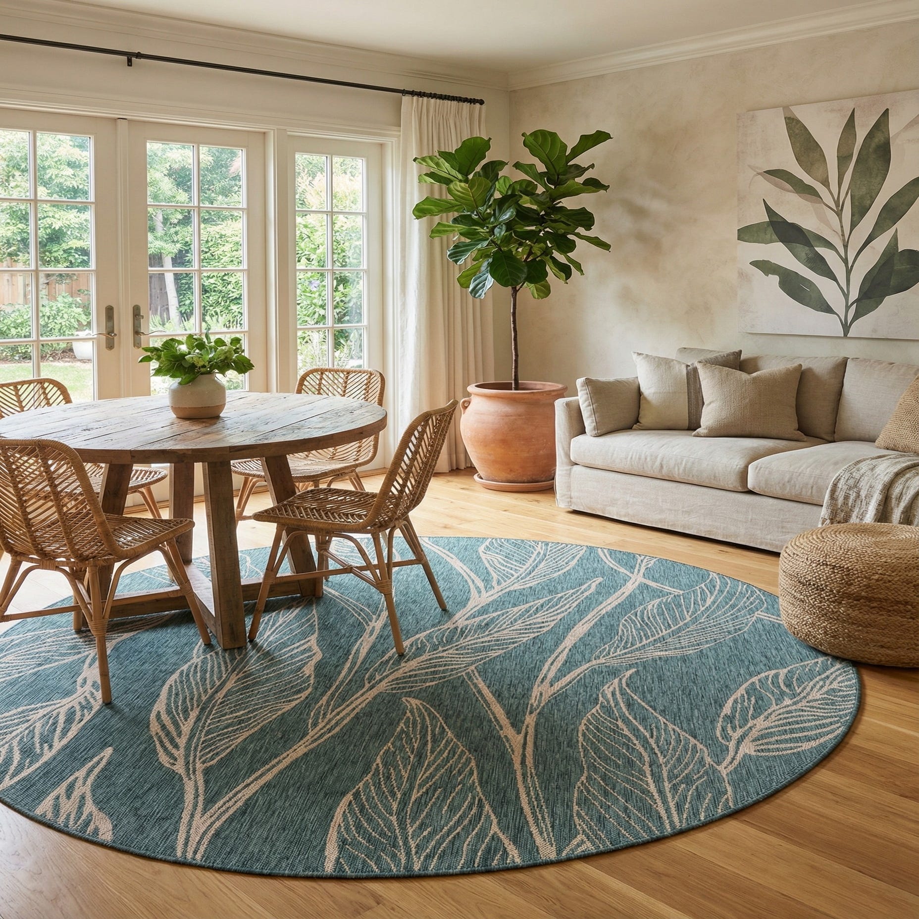 Primary image 10' 8 x 10' 8  Washable Botanical Indoor / Outdoor Round Rug