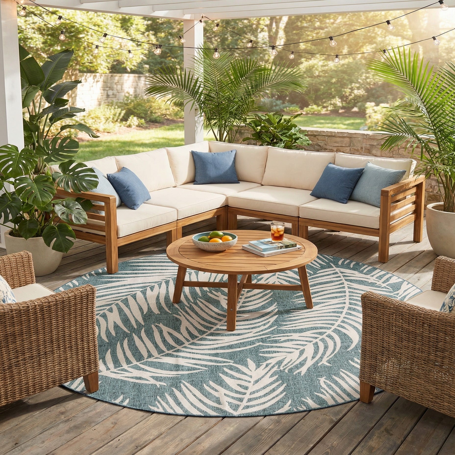 10' 8 x 10' 8 Washable Botanical Indoor / Outdoor Round Rug
