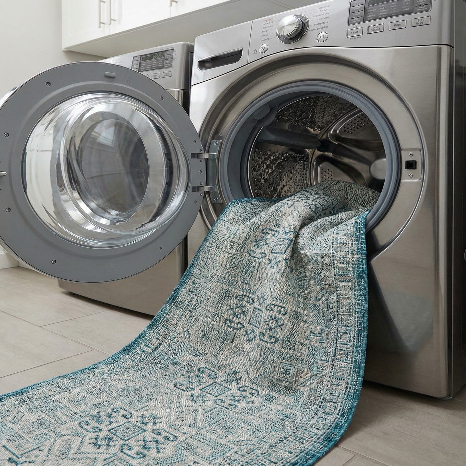Detail image of 2' 7 x 12'  Washable Aztec Indoor / Outdoor Runner Rug