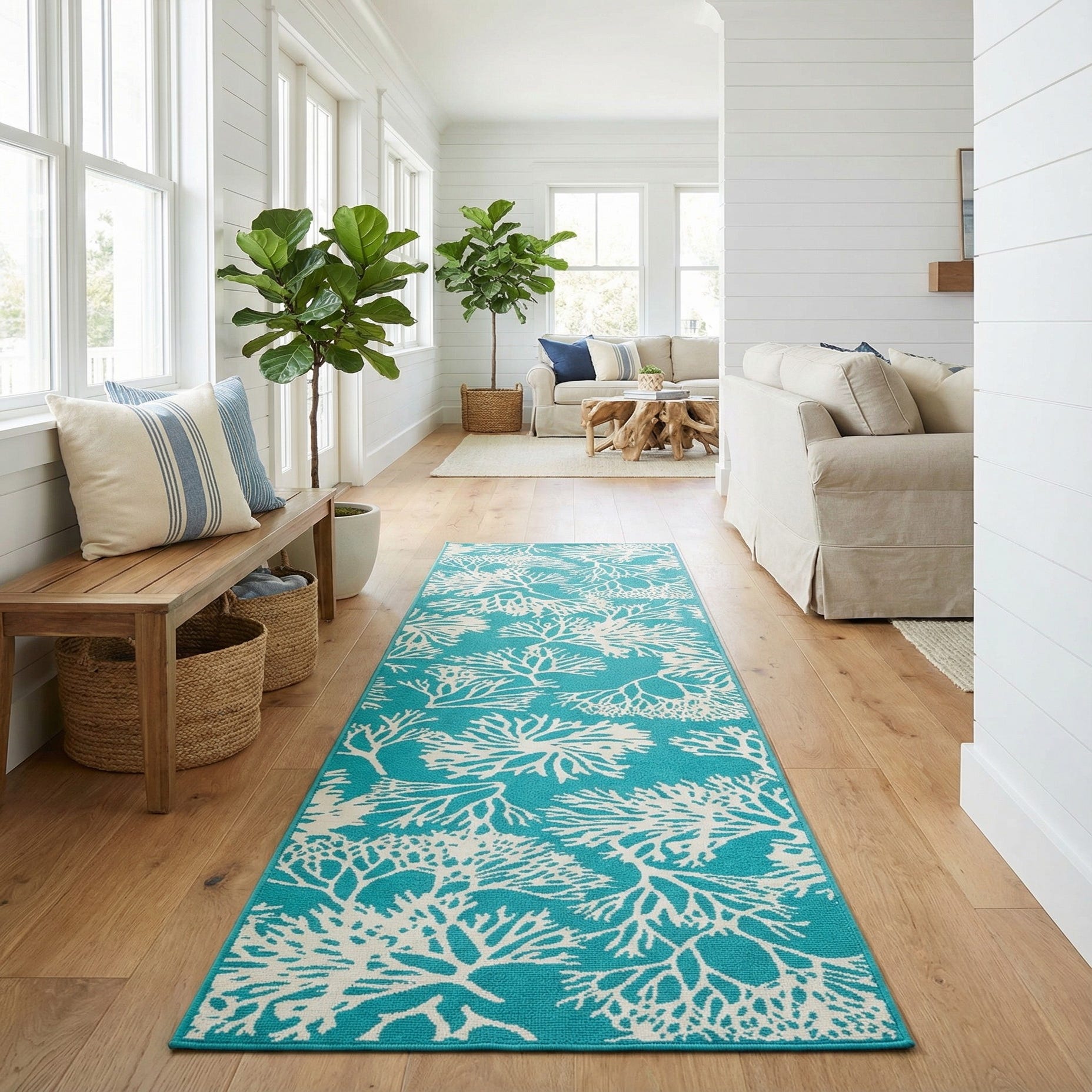 2' 7 x 12' Washable Coastal Indoor / Outdoor Runner Rug