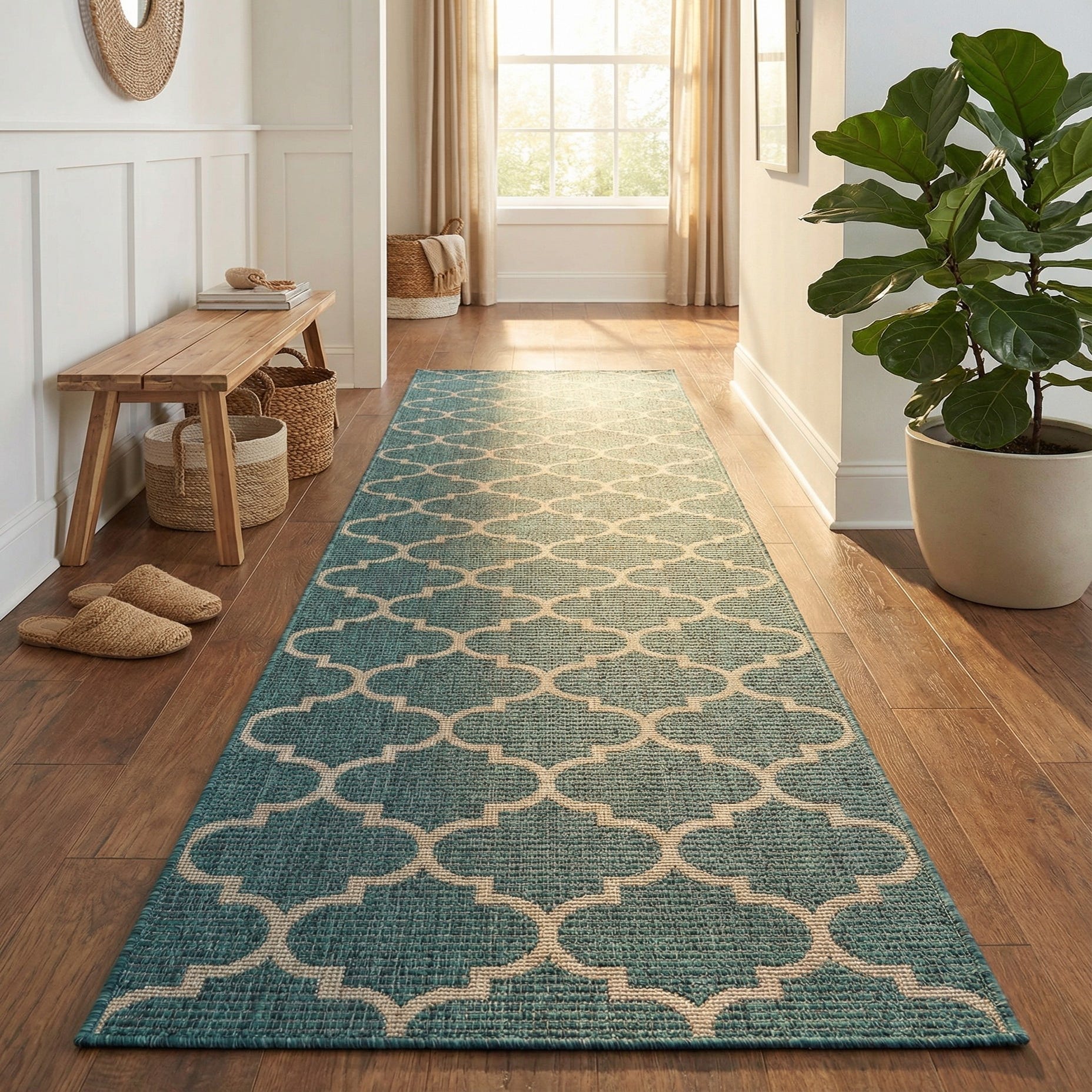 2' 7 x 12' Washable Trellis Indoor / Outdoor Runner Rug
