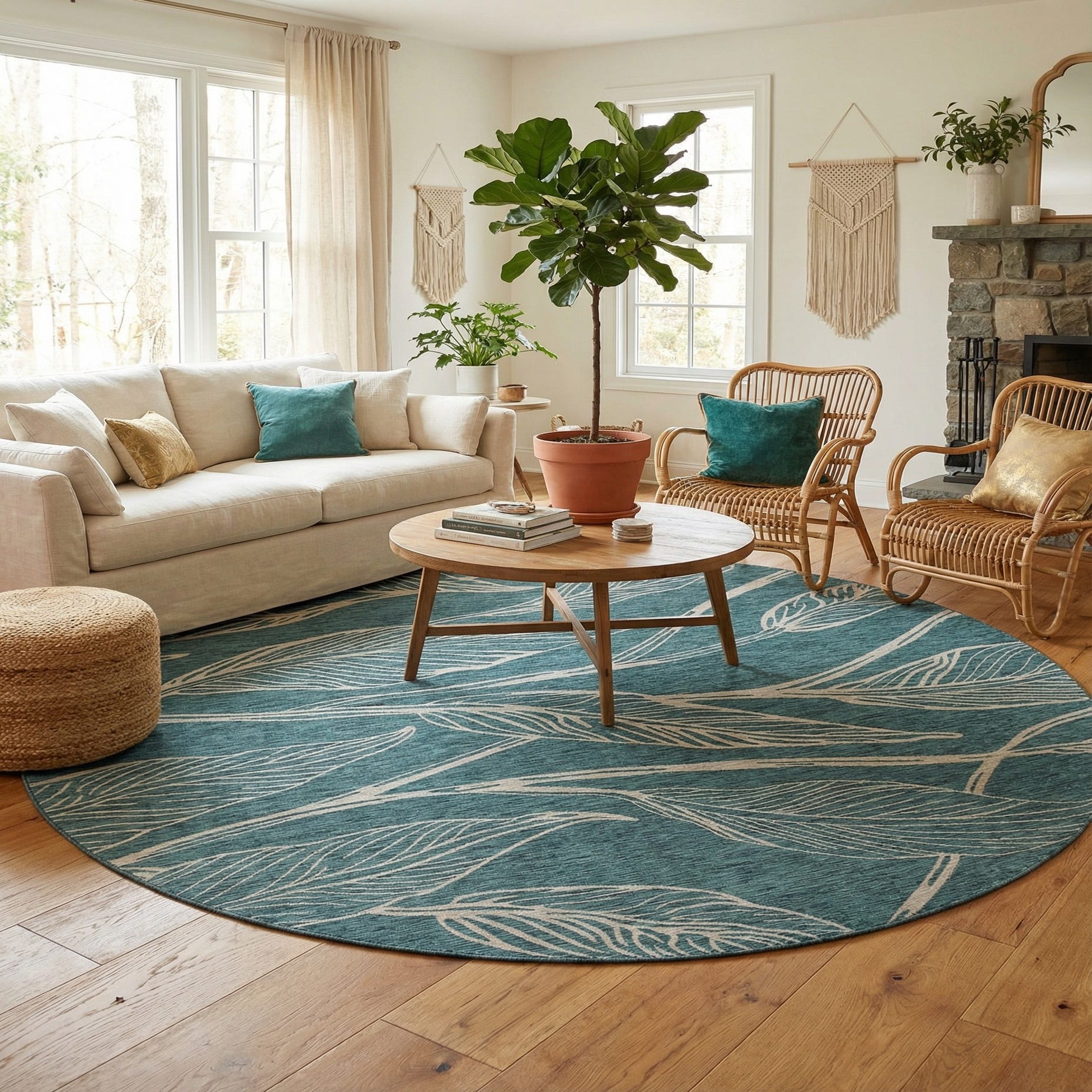 Detail image of 13' x 13'  Washable Botanical Indoor / Outdoor Round Rug