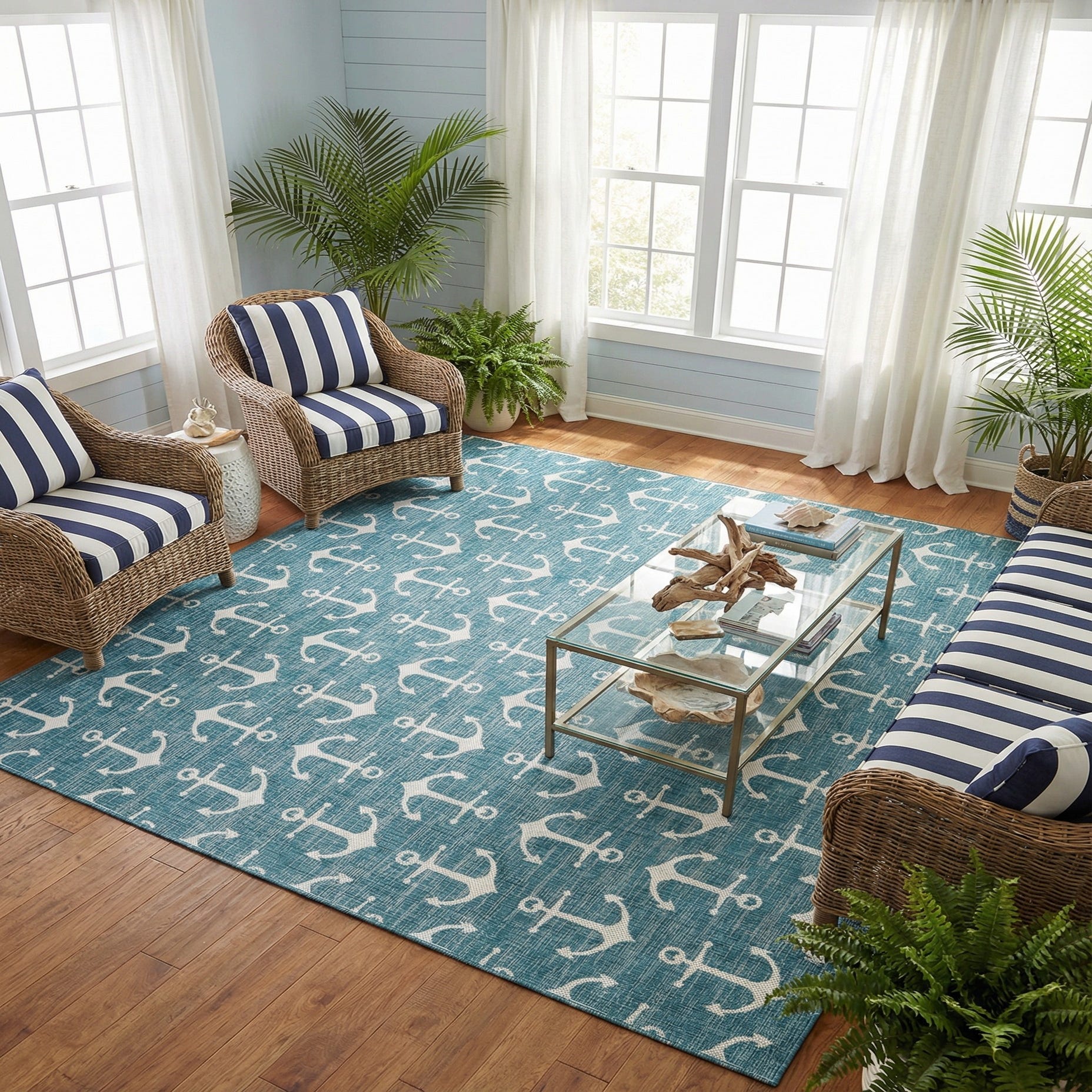 13' x 13' Washable Coastal Indoor / Outdoor Square Rug