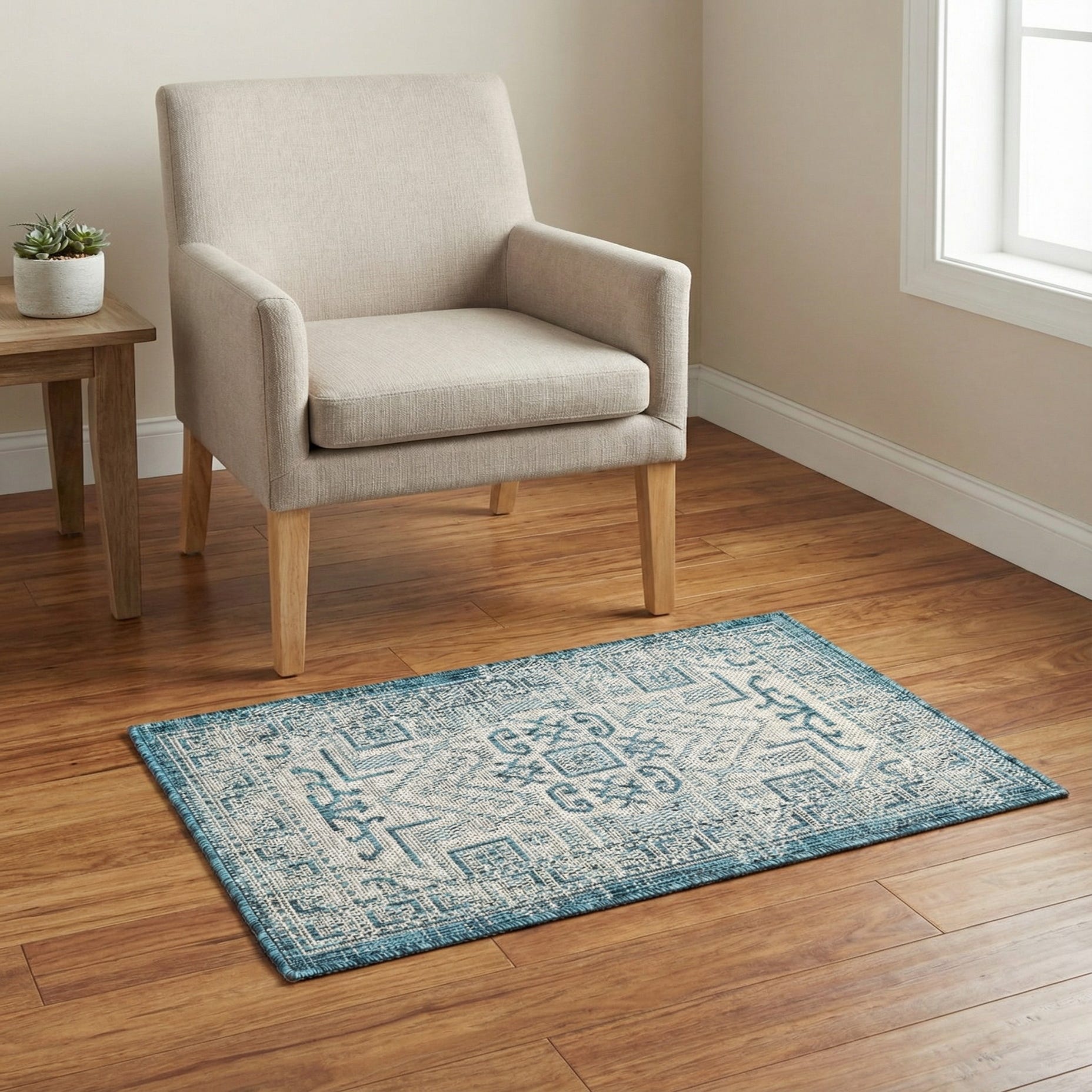 Primary image 2' x 3'  Washable Aztec Indoor / Outdoor Rug