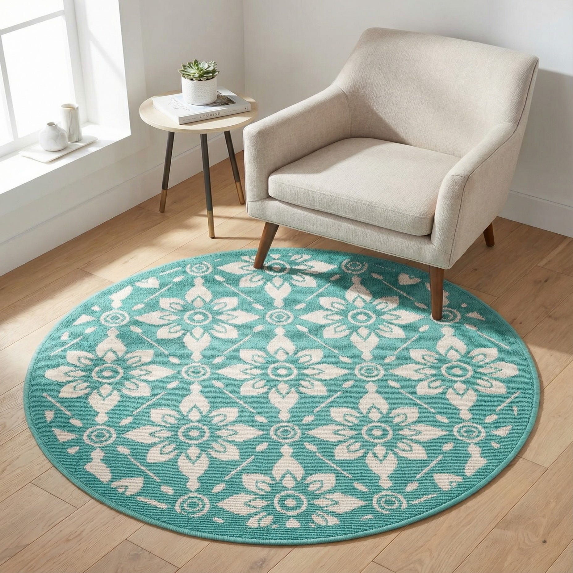 3' x 3' Washable Trellis Indoor / Outdoor Round Rug