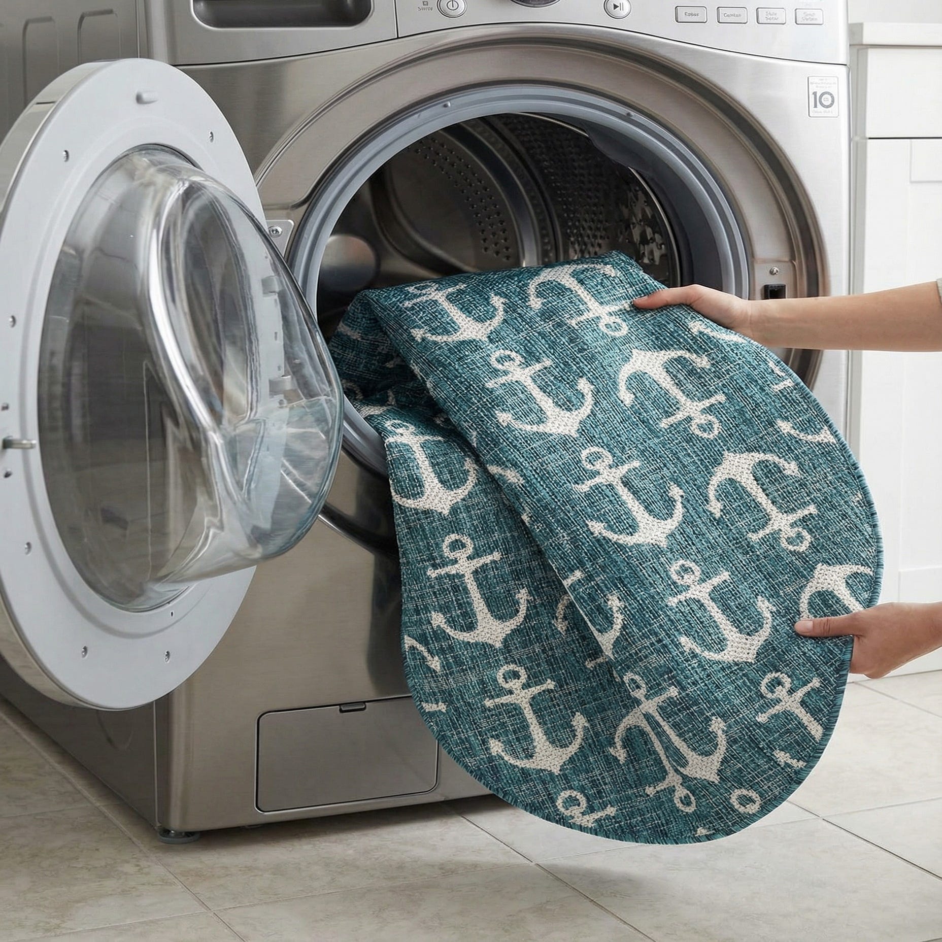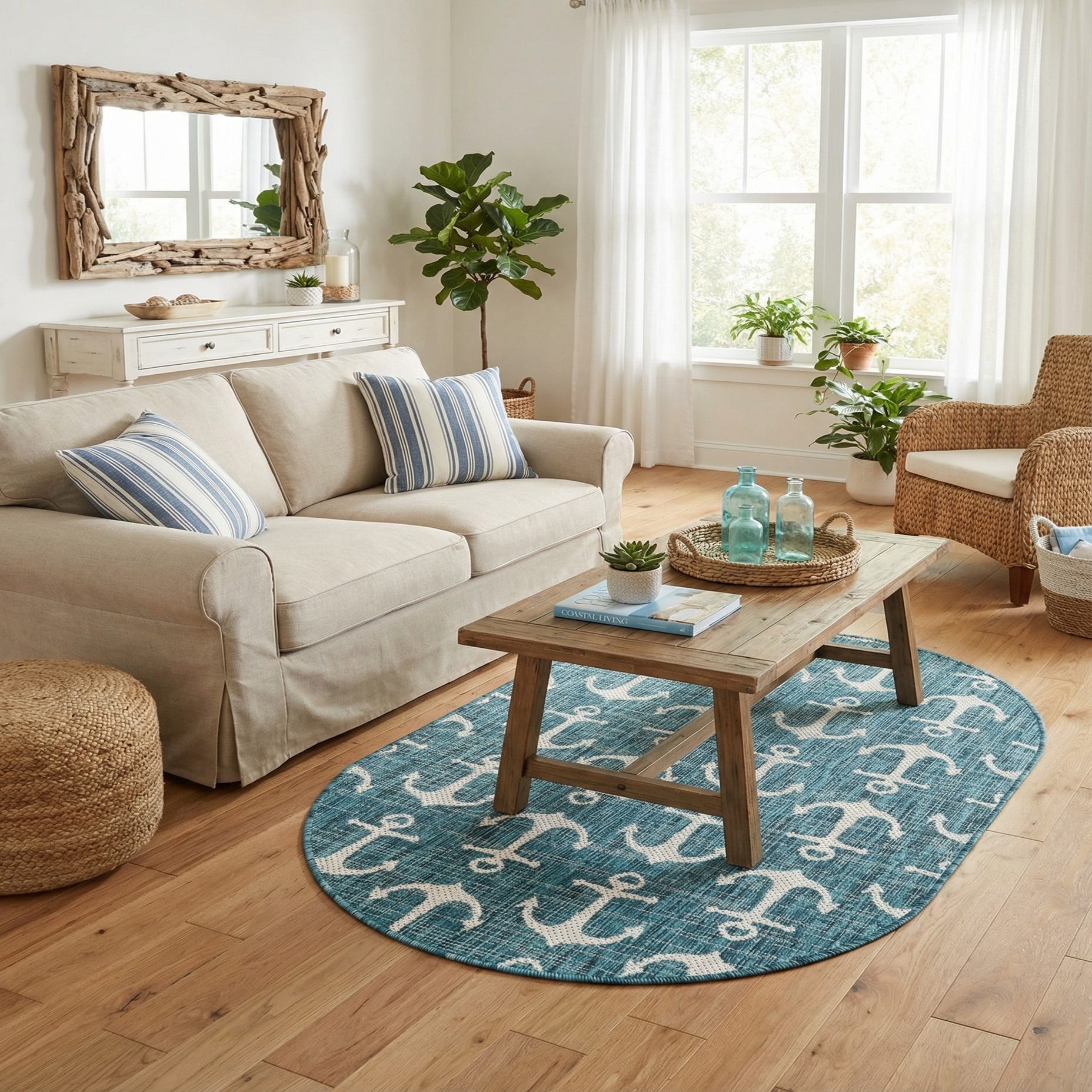 3' x 5' 3 Washable Coastal Indoor / Outdoor Oval Rug