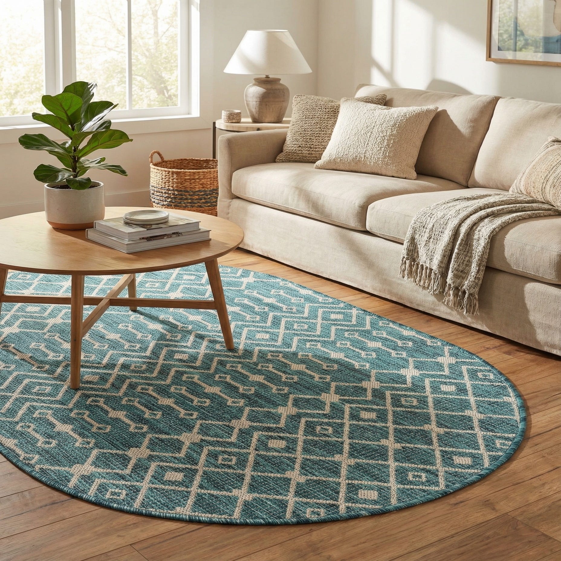 3' x 5' 3 Washable Trellis Indoor / Outdoor Oval Rug
