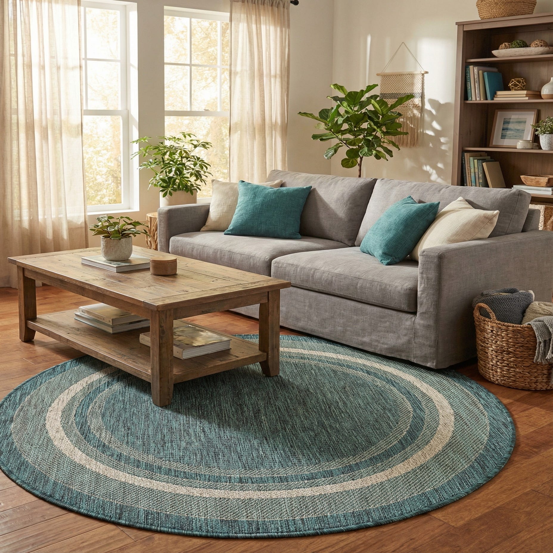 4' x 4' Washable Border Indoor / Outdoor Round Rug