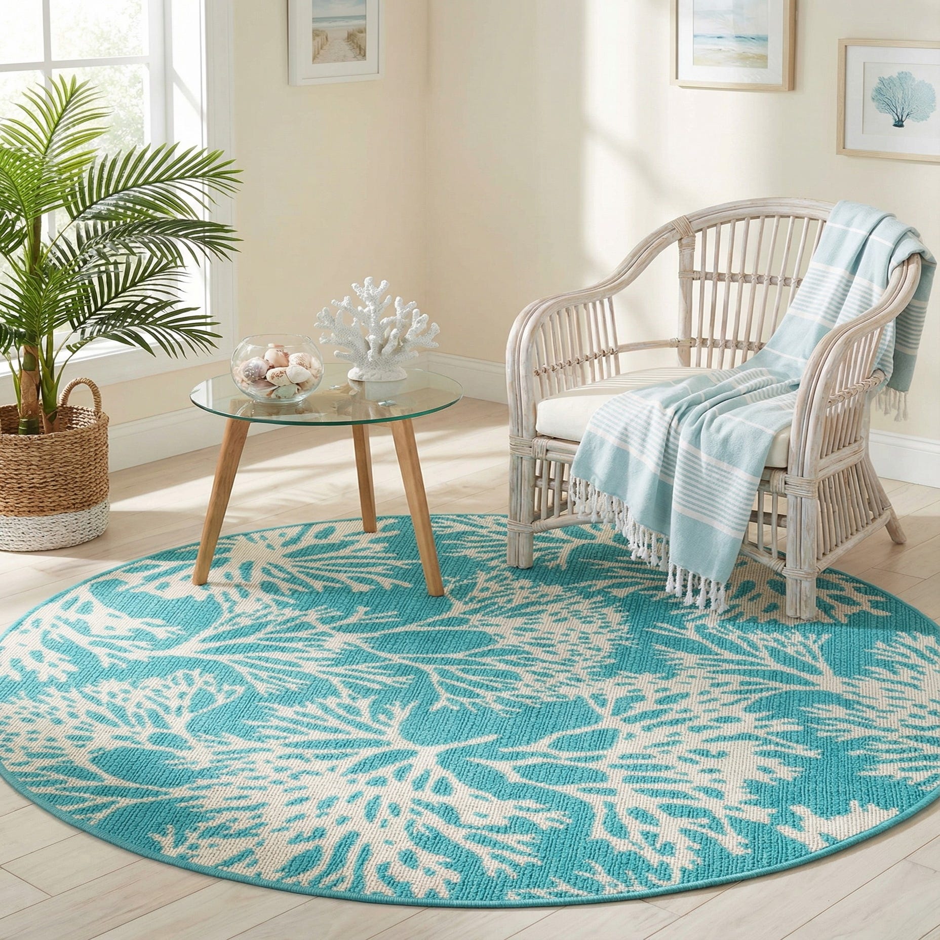 4' x 4' Washable Coastal Indoor / Outdoor Round Rug