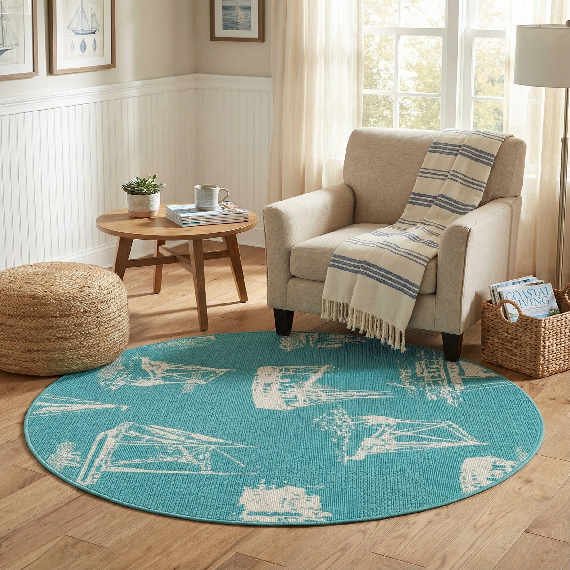 Primary image 4' x 4'  Washable Coastal Indoor / Outdoor Round Rug