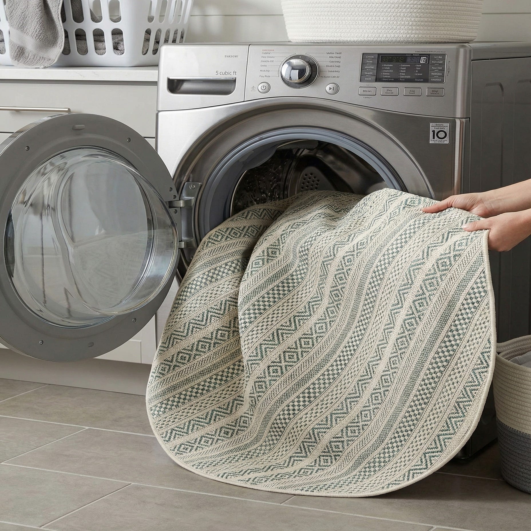 4' x 4' Washable Striped Indoor / Outdoor Round Rug