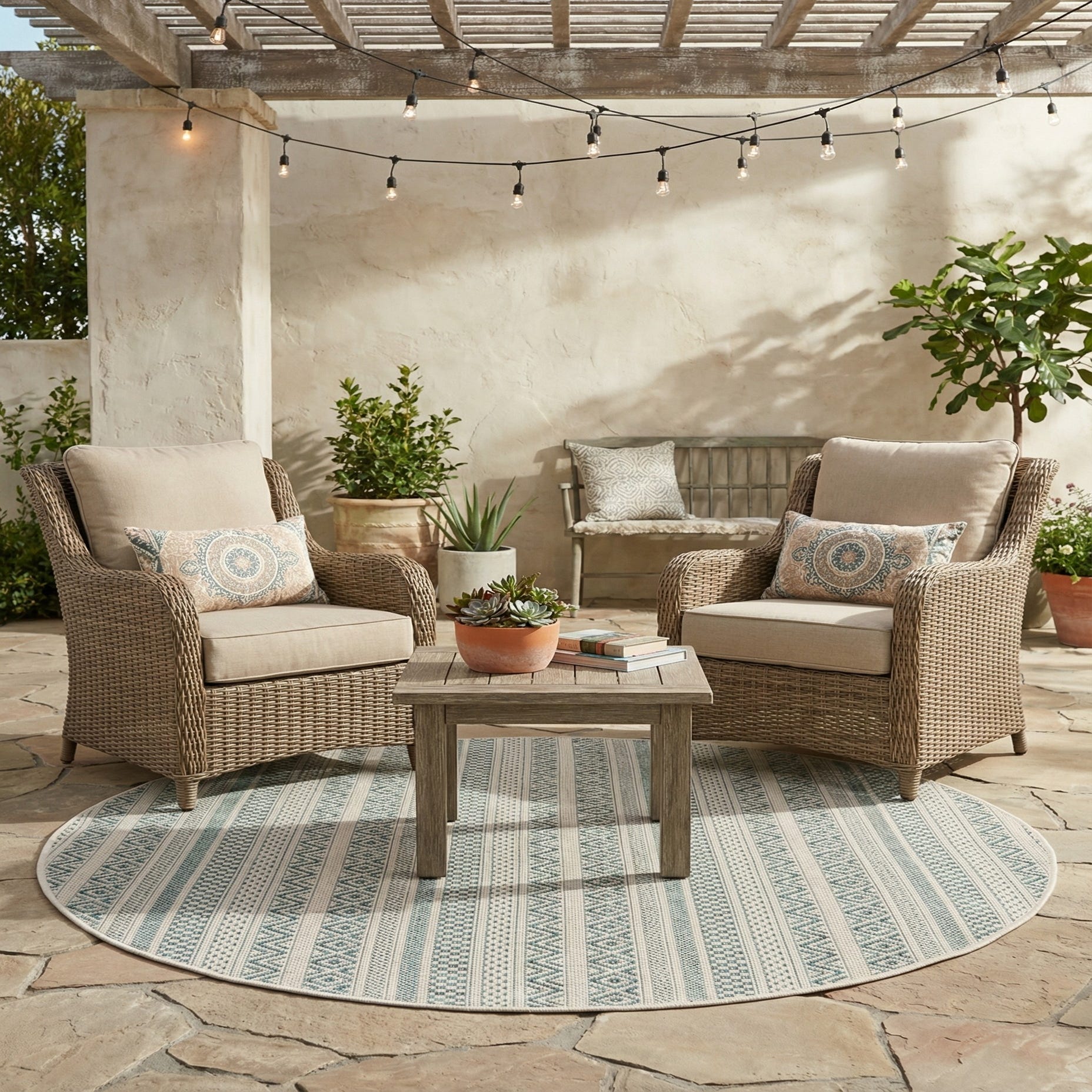 4' x 4' Washable Striped Indoor / Outdoor Round Rug