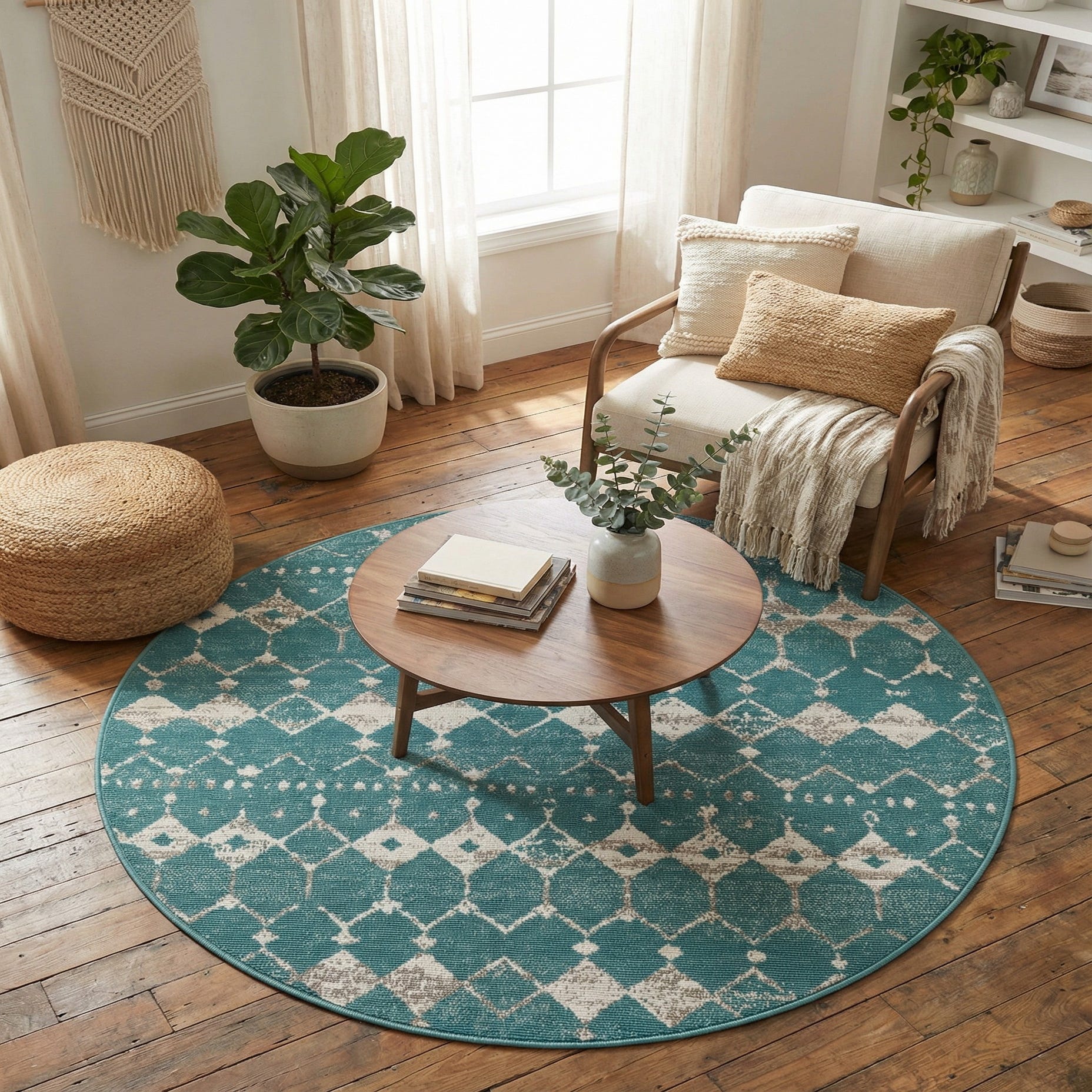 4' x 4' Washable Trellis Indoor / Outdoor Round Rug