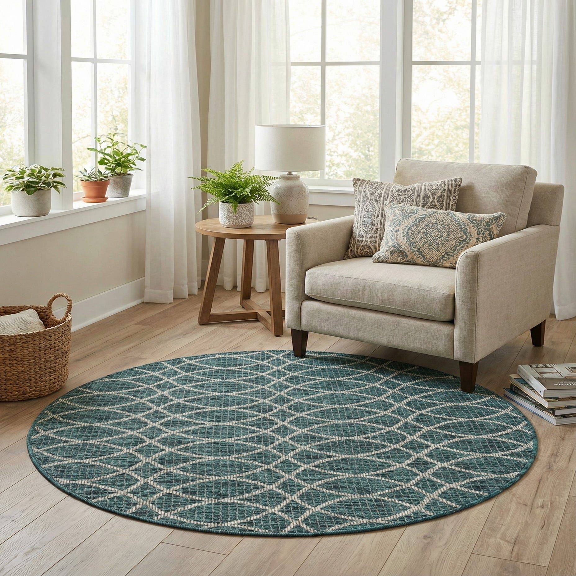 4' x 4' Washable Trellis Indoor / Outdoor Round Rug