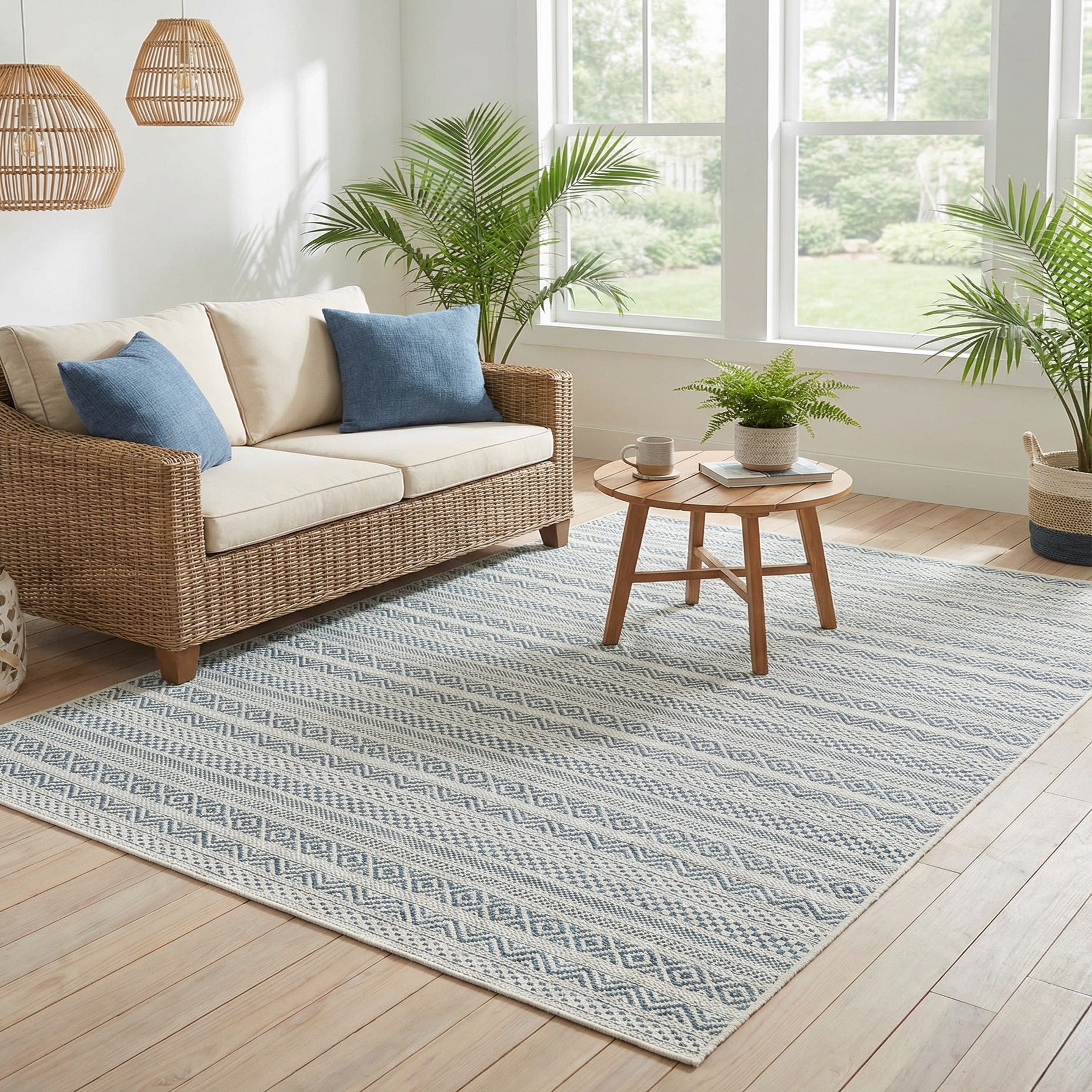 4' x 6' Washable Striped Indoor / Outdoor Rug