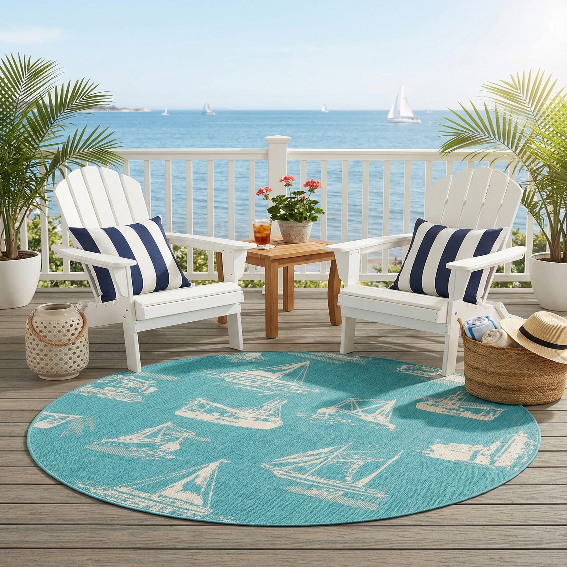 4' x 6' Washable Coastal Indoor / Outdoor Oval Rug