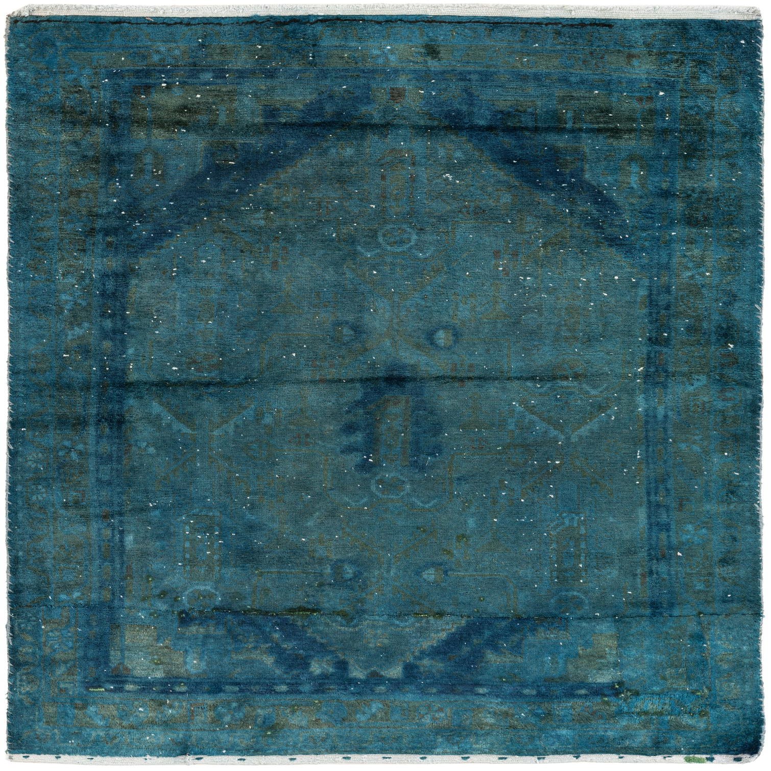 Primary color is Teal. Colors in this rug include: Teal, Navy Blue.