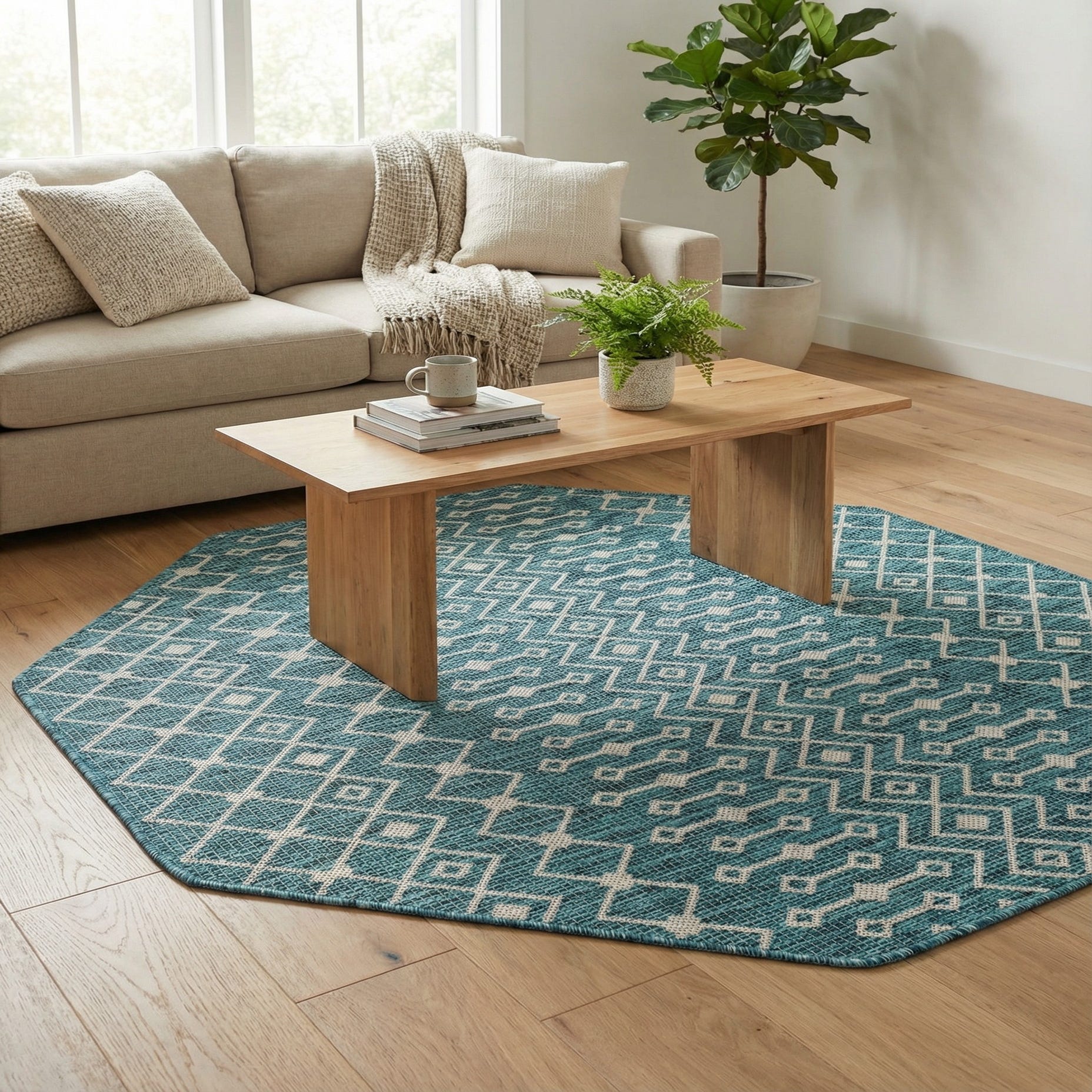 5' 3 x 5' 3 Washable Trellis Indoor / Outdoor Octagon Rug