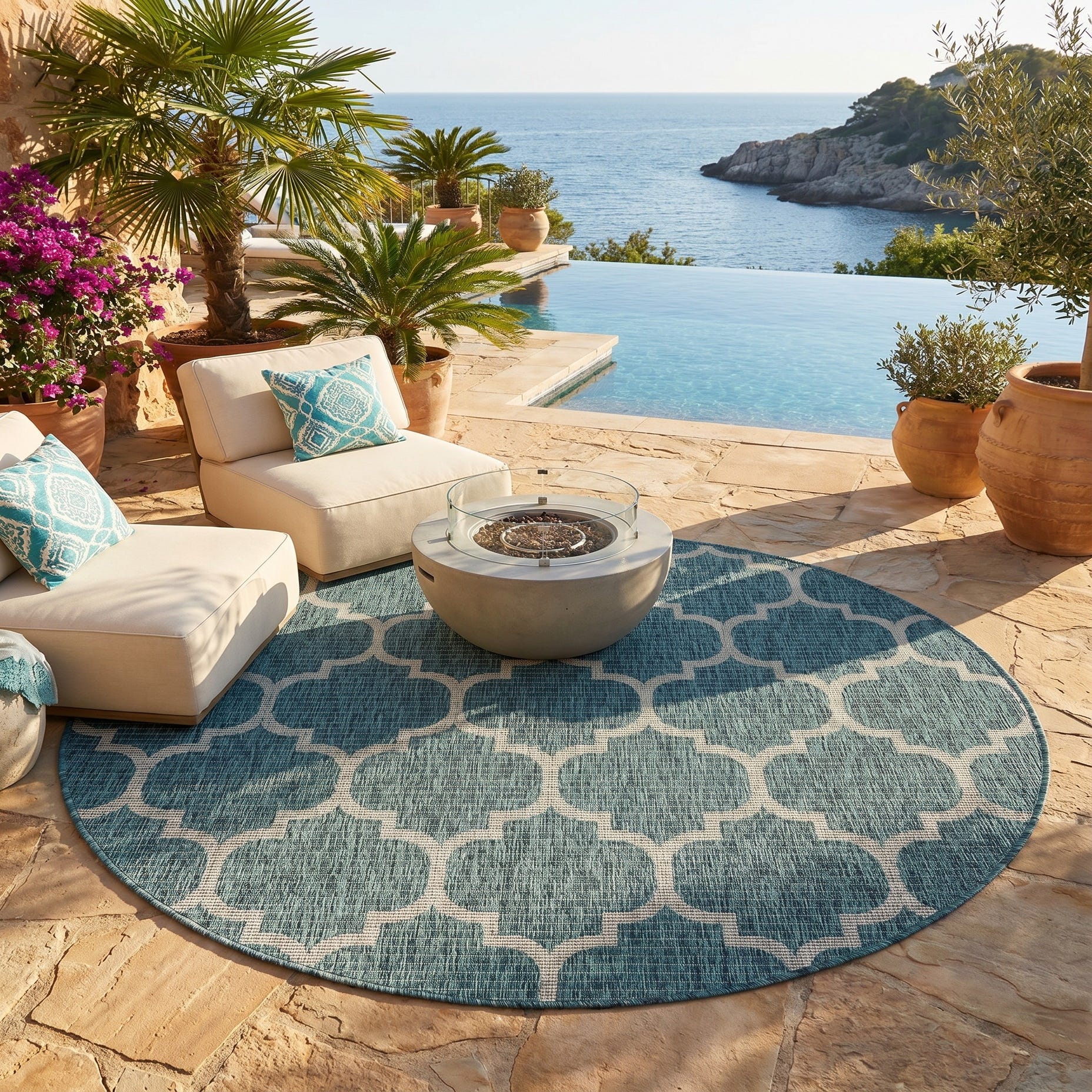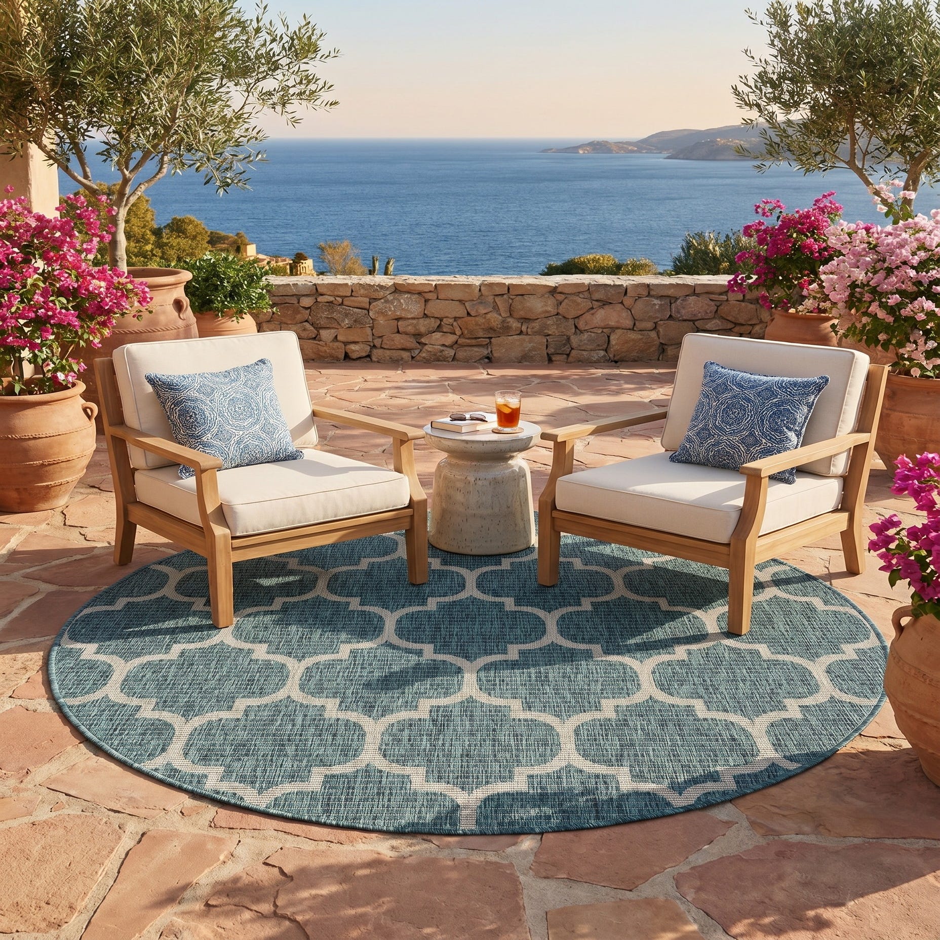 5' 3 x 5' 3 Easy-Clean Trellis Indoor / Outdoor Round Rug
