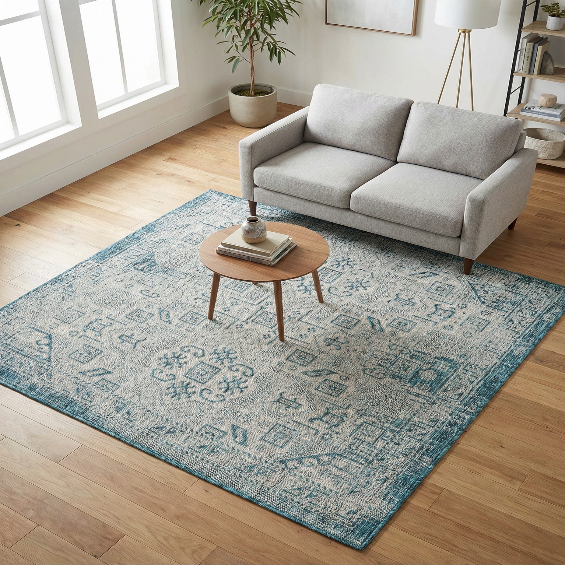 5' 3 x 5' 3 Washable Aztec Indoor / Outdoor Square Rug