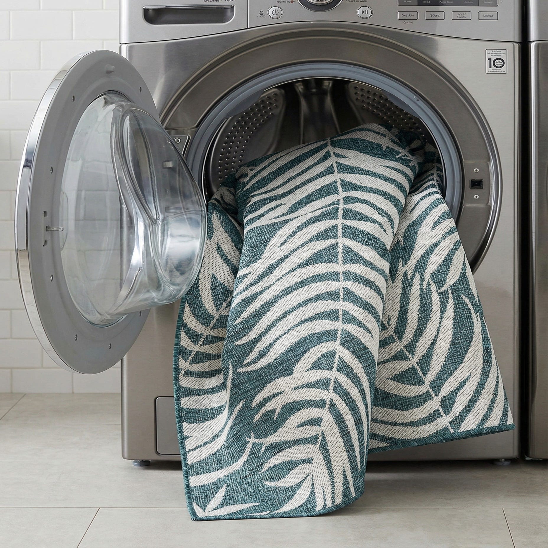 5' 3 x 5' 3 Washable Botanical Indoor / Outdoor Square Rug