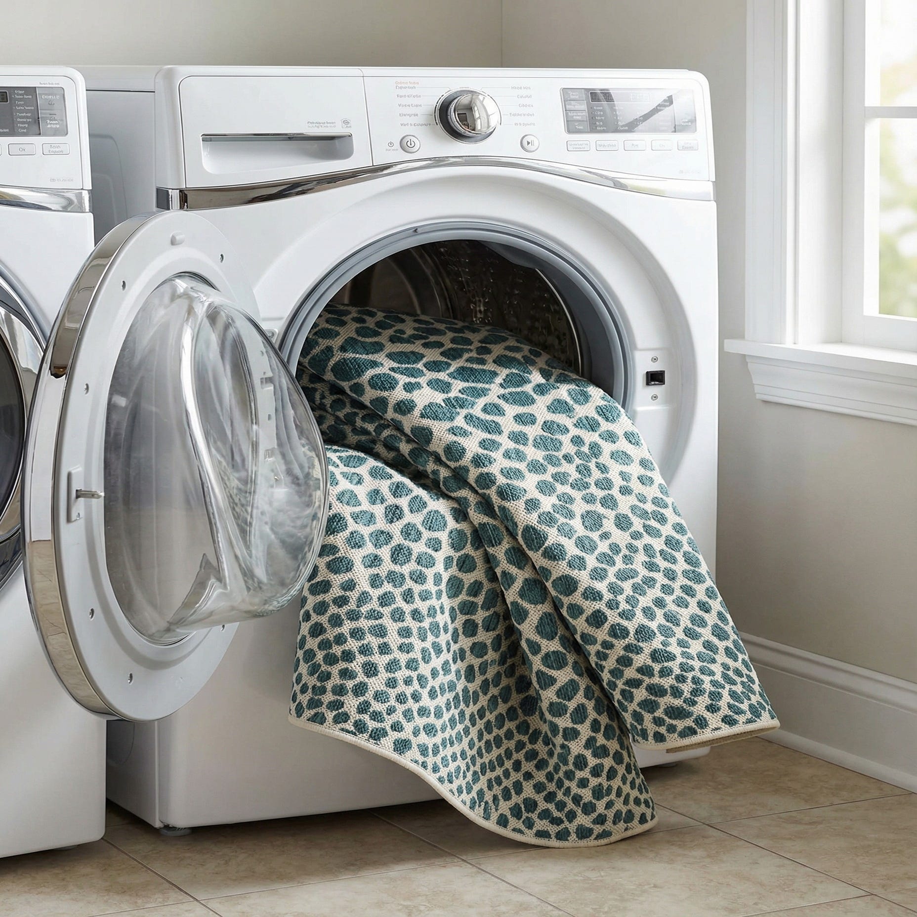 Primary color is Teal. Colors in this rug include: Teal, Ivory.