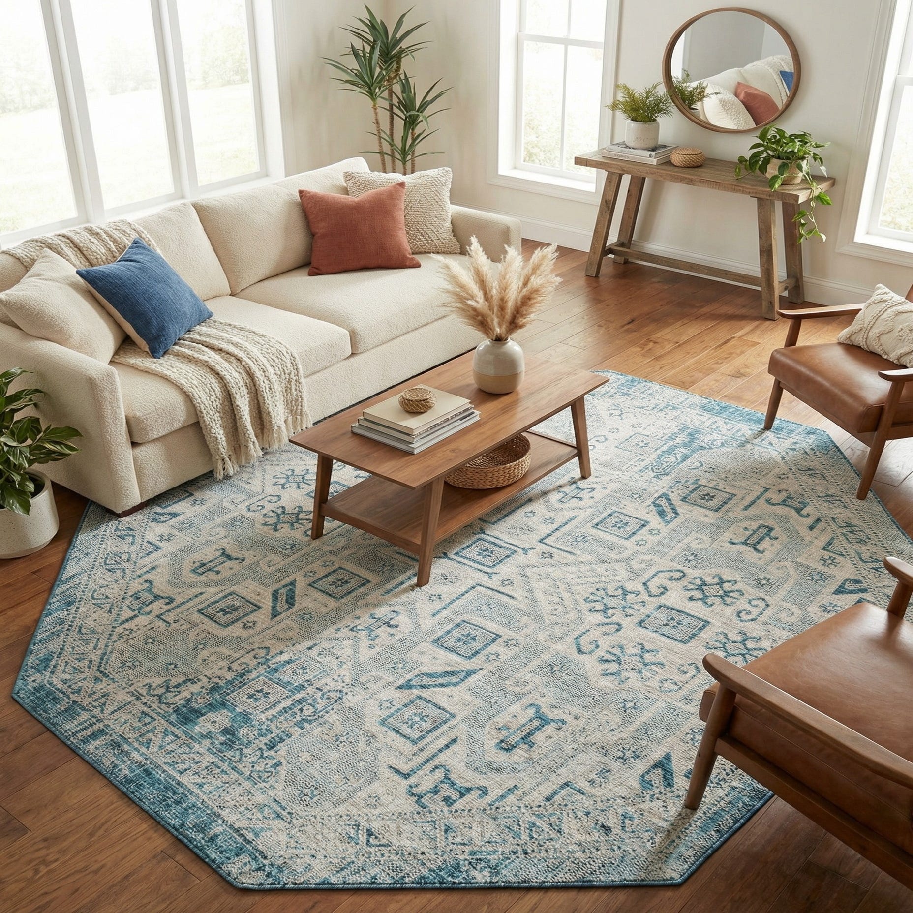 Primary image 7' 10 x 7' 10  Washable Aztec Indoor / Outdoor Octagon Rug
