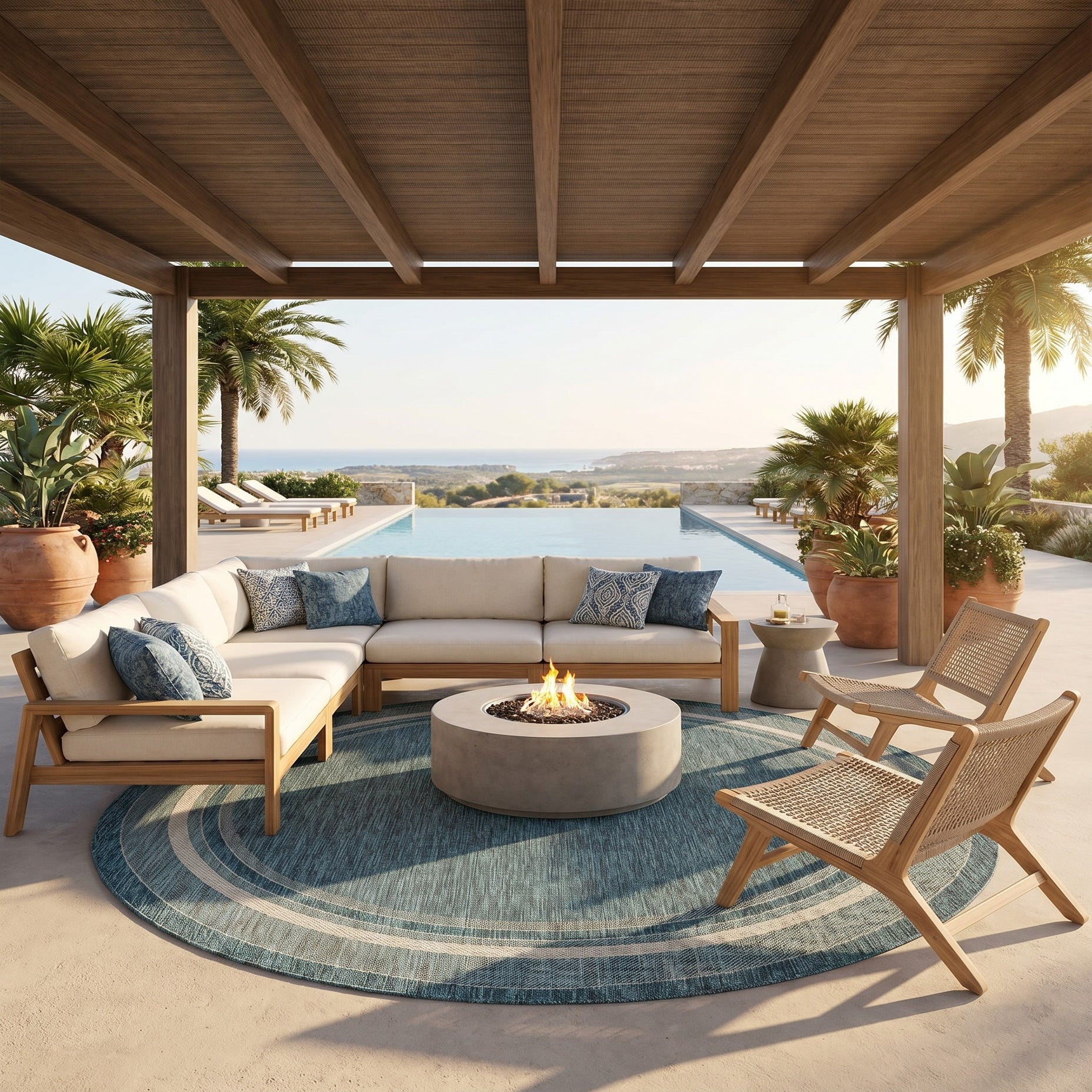 I LOVE this rug. It’s gorgeous. It fits my space perfectly and covers the imperfections of my patio that are waiting to be repaired. I’ve received so many compliments. My outdoor space has never been cozier and more for inviting. The best part is how quickly it dries after a rain. I am thoroughly impressed by the quality and craftsmanship of this rug.