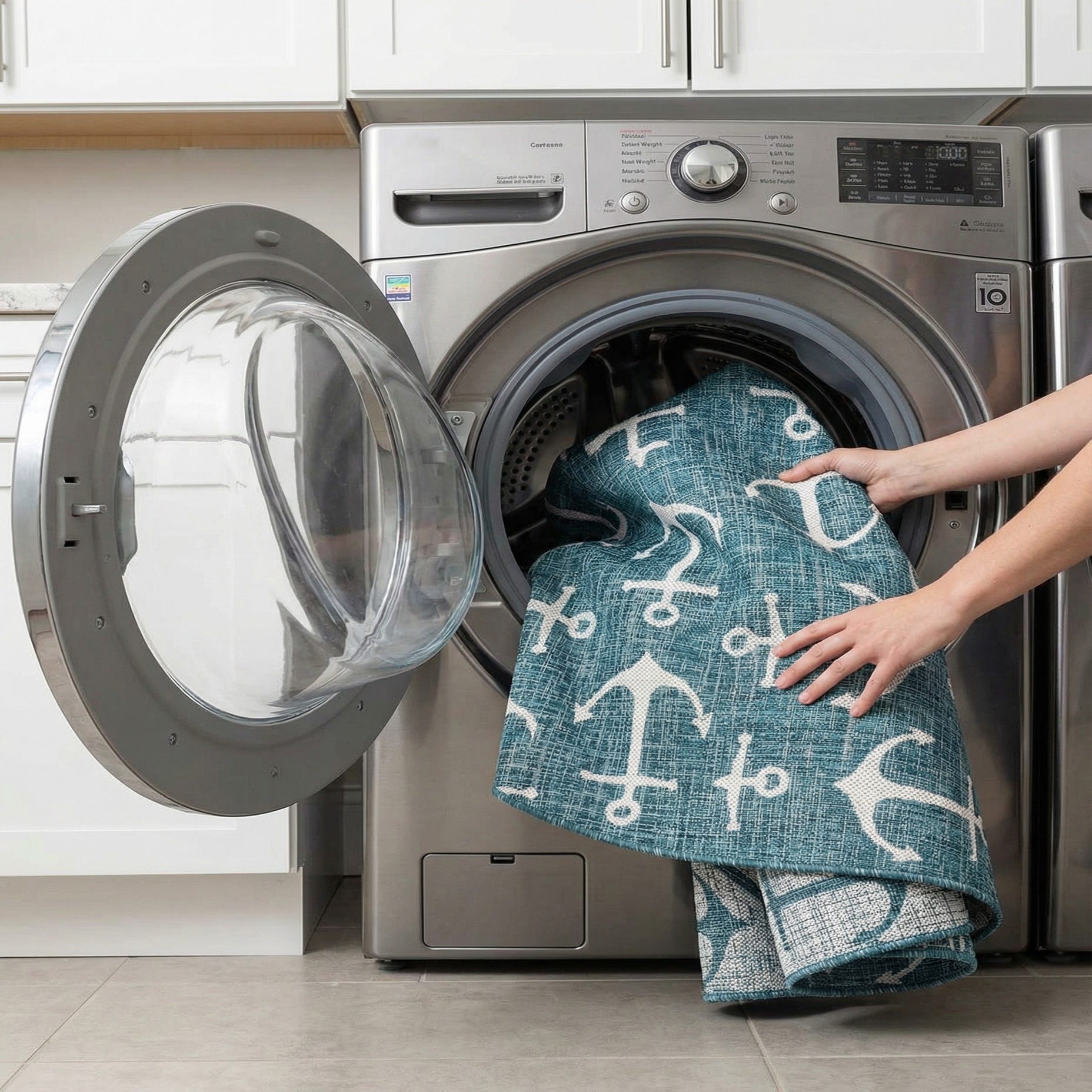 Primary image 7' 10 x 7' 10  Washable Coastal Indoor / Outdoor Round Rug