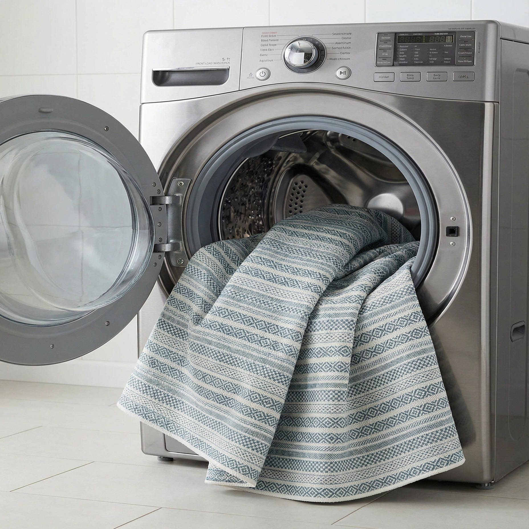 Detail image of 7' 10 x 7' 10  Washable Striped Indoor / Outdoor Round Rug