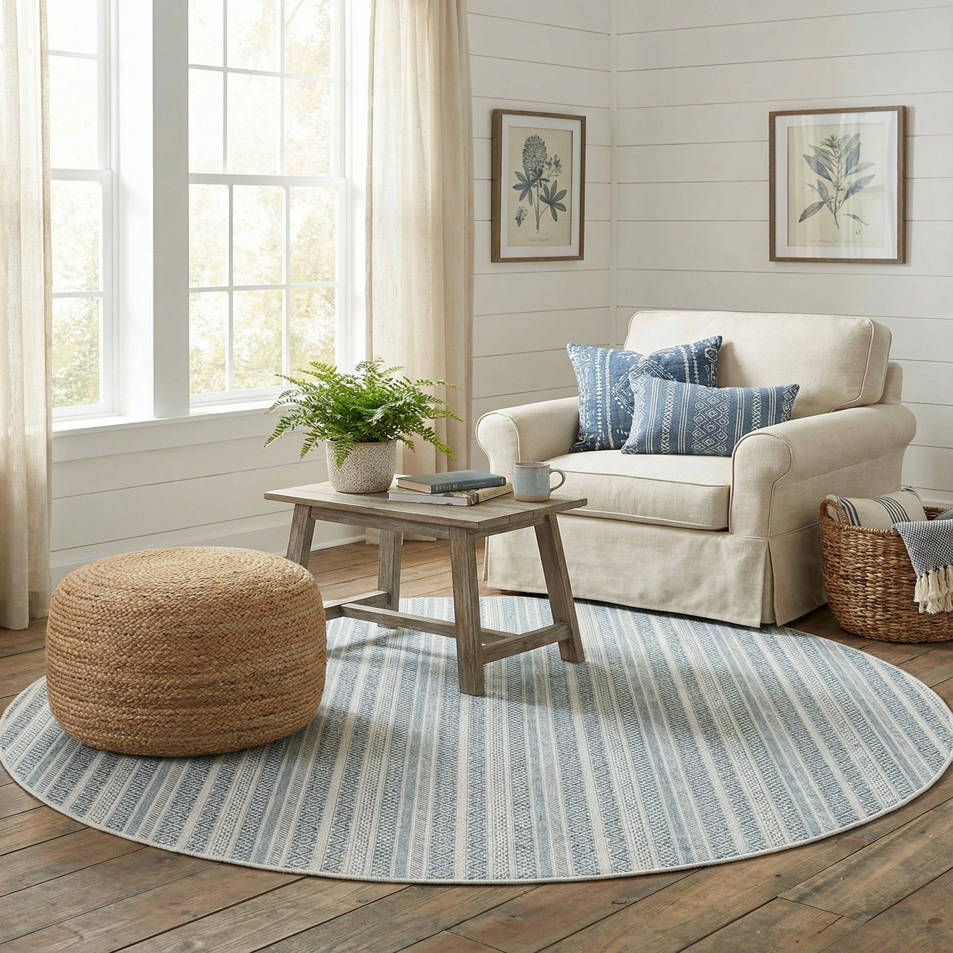 7' 10 x 7' 10 Washable Striped Indoor / Outdoor Round Rug