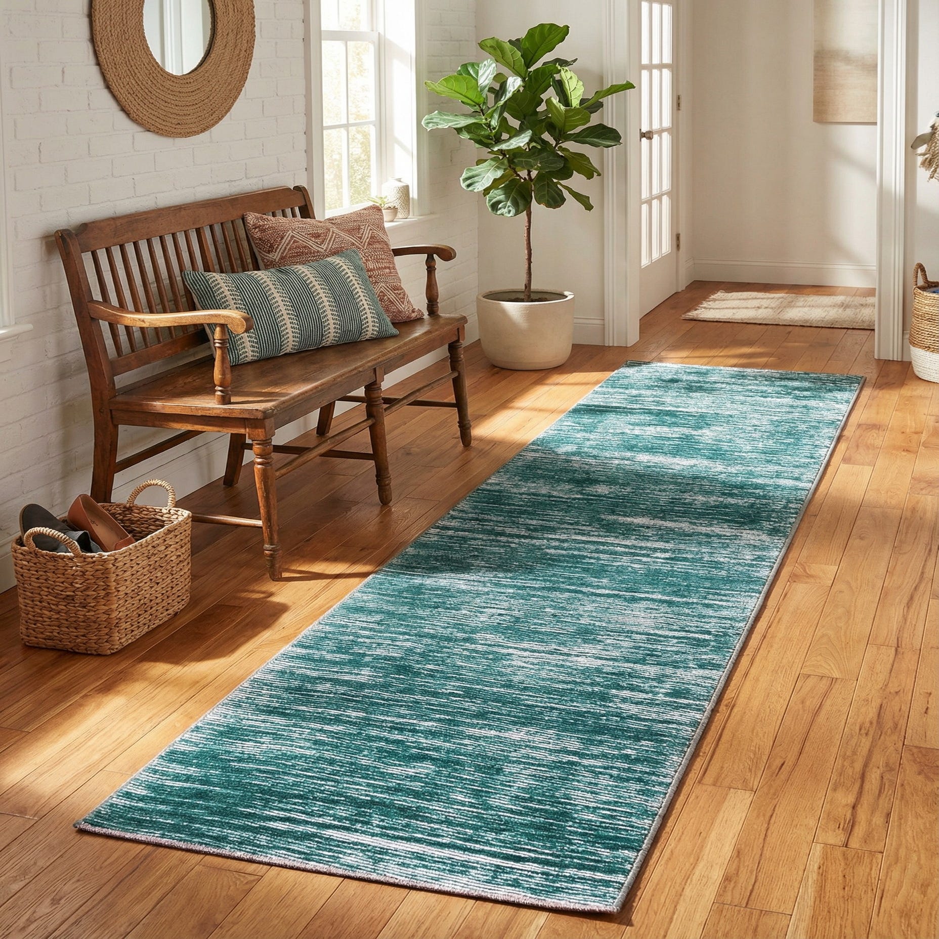 Primary color is Teal. Colors in this rug include: Teal, Ivory.